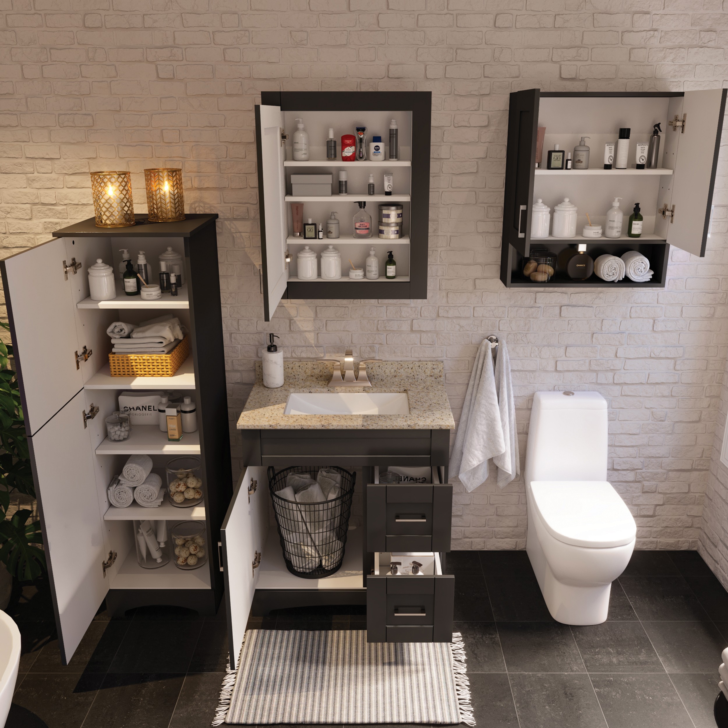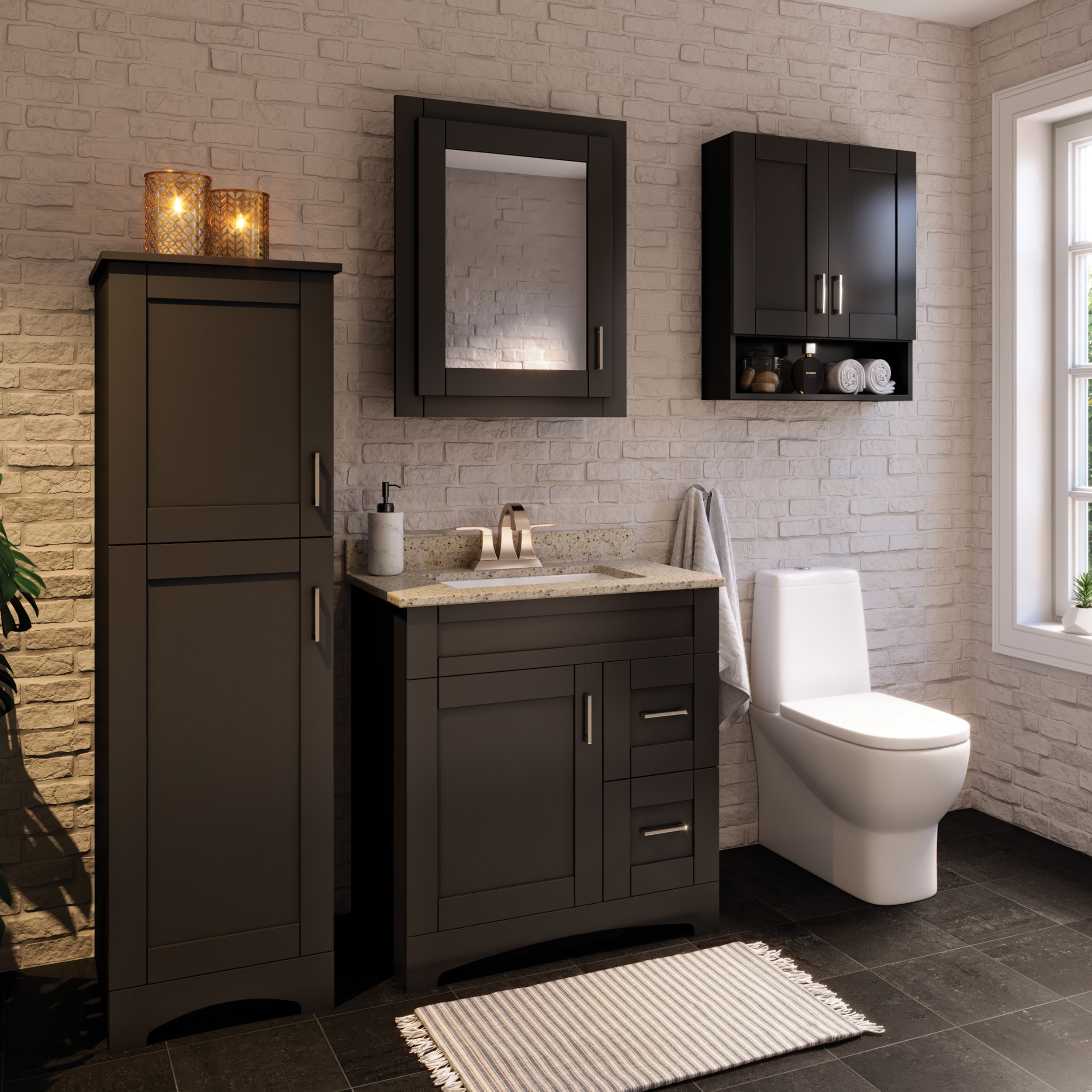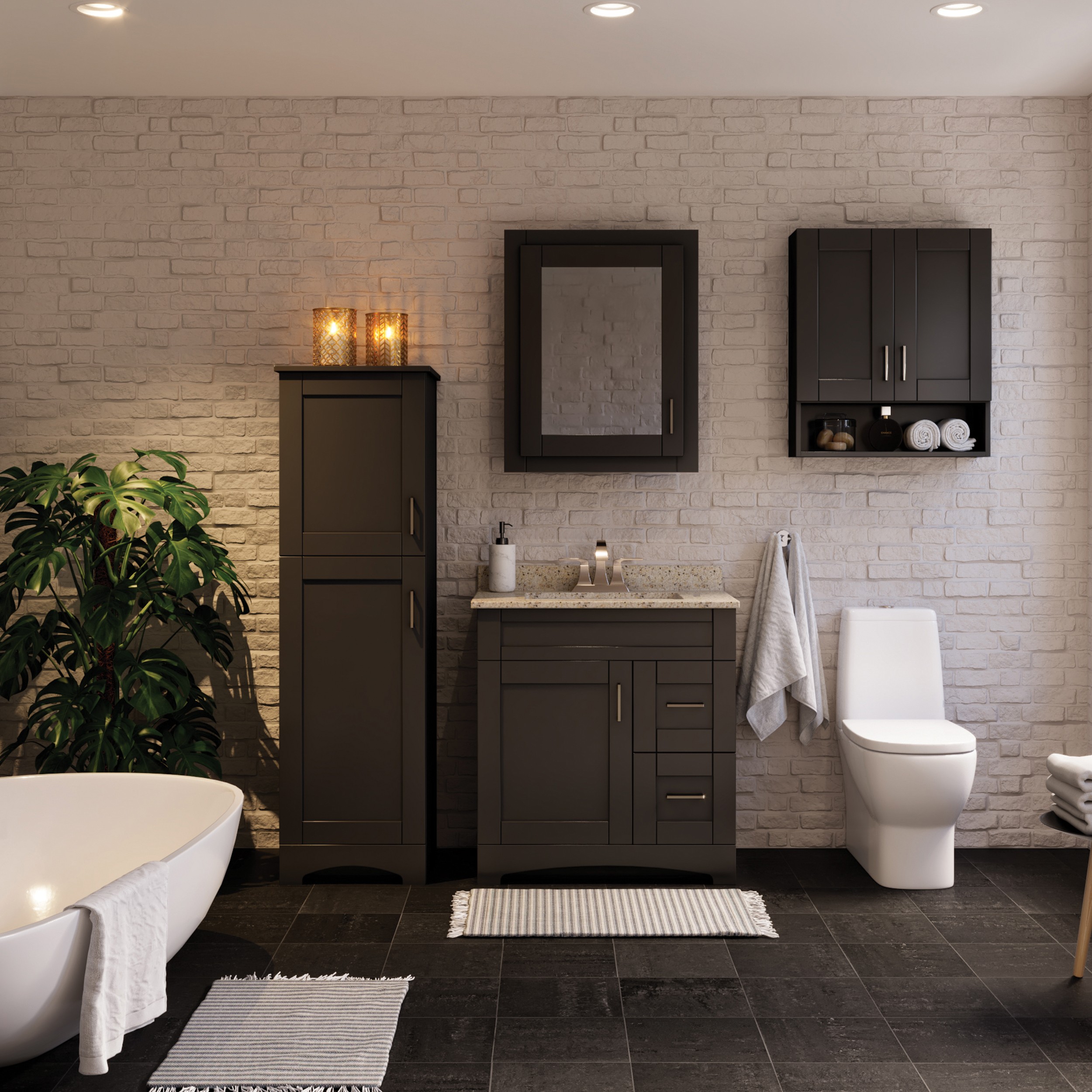 The Brighton Collection offers transitional styling with multiple vanity sizes and accessories to accommodate your unique storage needs. Brighton features a trendy shaker door and drawer profile in a dark chocolate or matte white finish. Soft close door hinges and drawer slides are included, providing smooth and quiet use. Complete the look with matching linen and medicine cabinets.