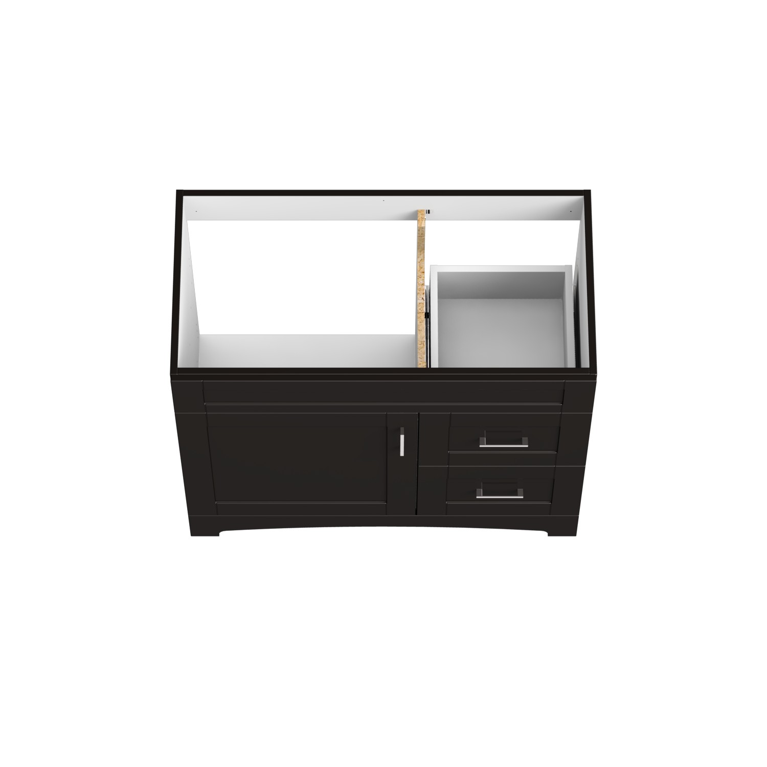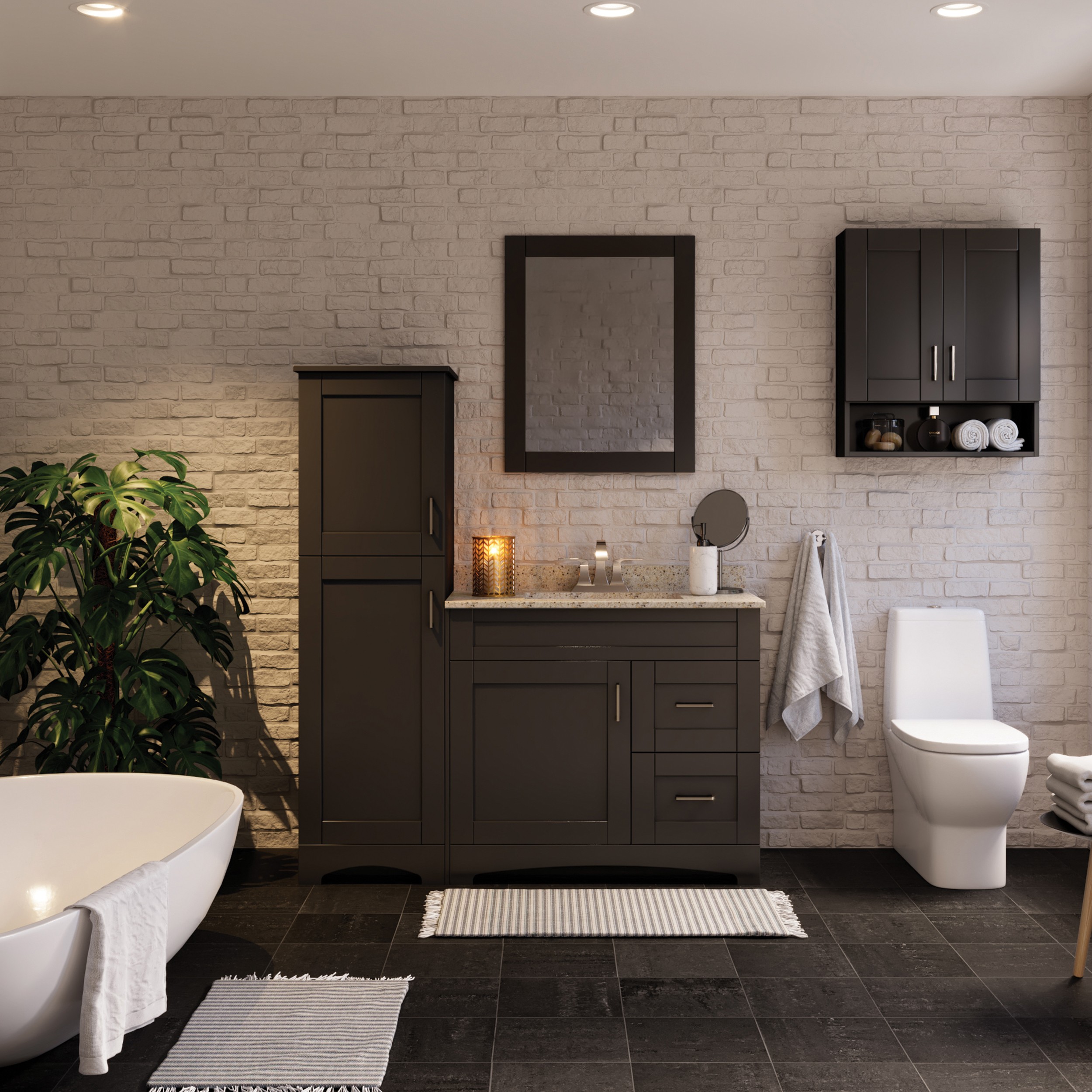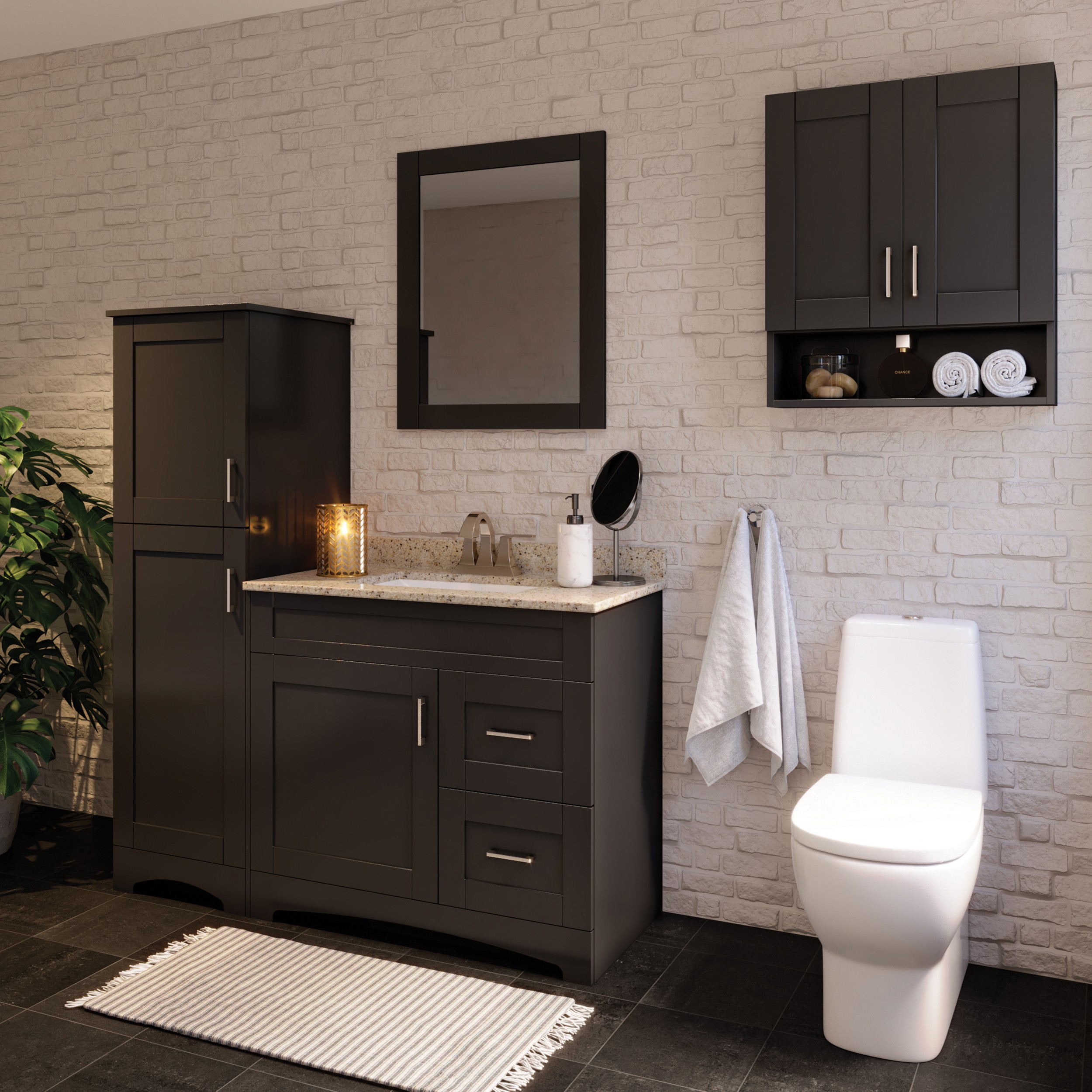 The Brighton Collection offers transitional styling with multiple vanity sizes and accessories to accommodate your unique storage needs. Brighton features a trendy shaker door and drawer profile in a dark chocolate or matte white finish. Soft close door hinges and drawer slides are included, providing smooth and quiet use. Complete the look with matching linen and medicine cabinets.