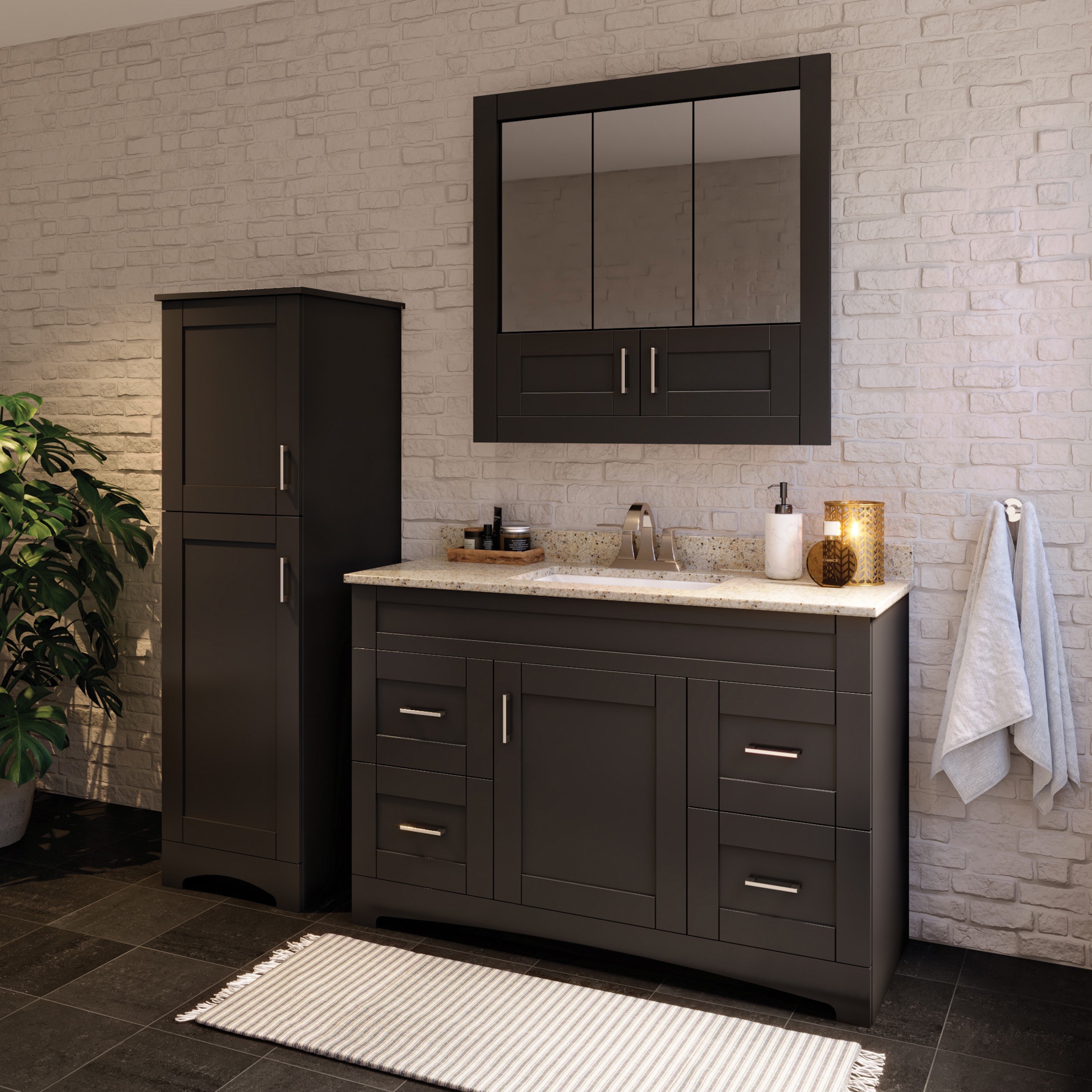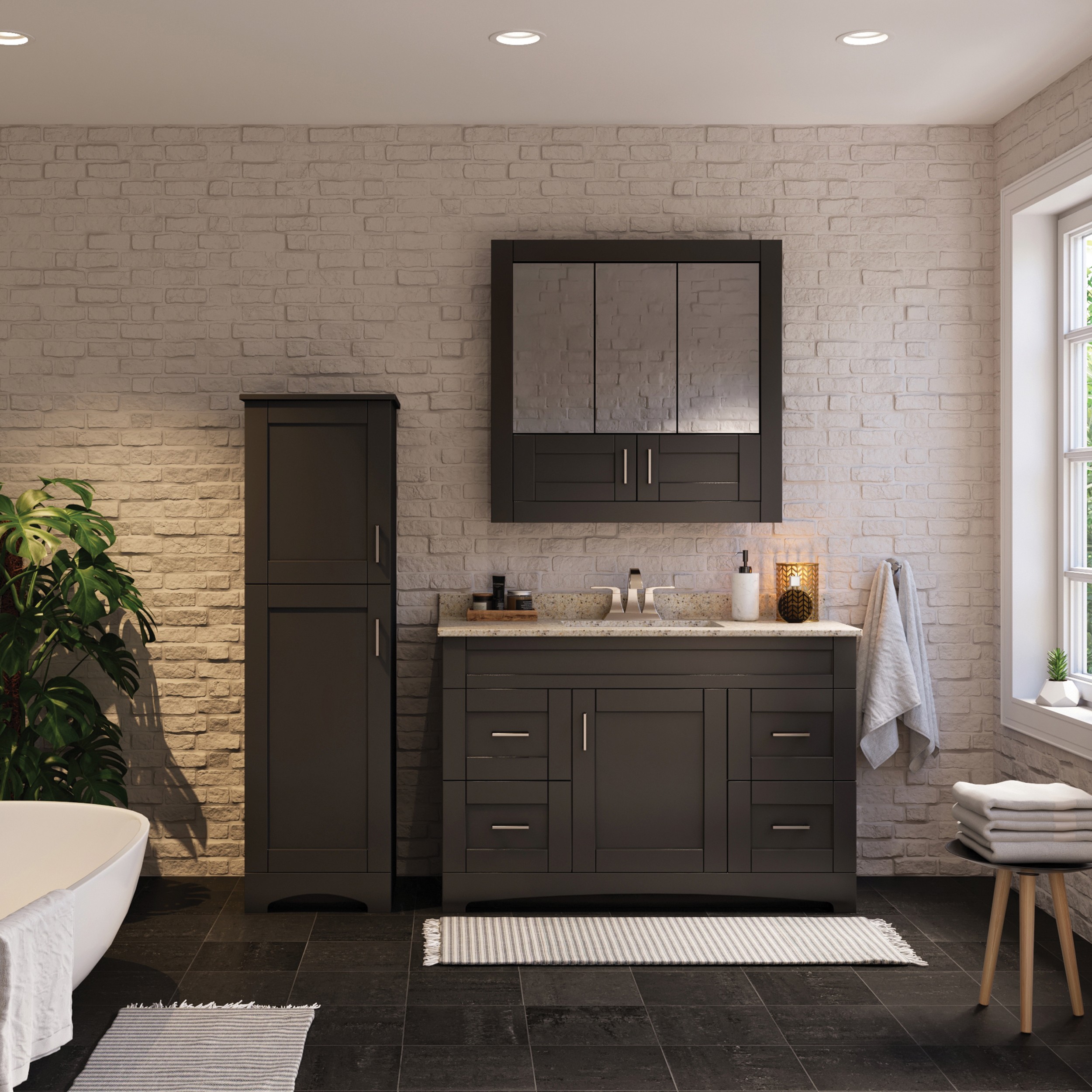 The Brighton Collection offers transitional styling with multiple vanity sizes and accessories to accommodate your unique storage needs. Brighton features a trendy shaker door and drawer profile in a dark chocolate or matte white finish. Soft close door hinges and drawer slides are included, providing smooth and quiet use. Complete the look with matching linen and medicine cabinets.