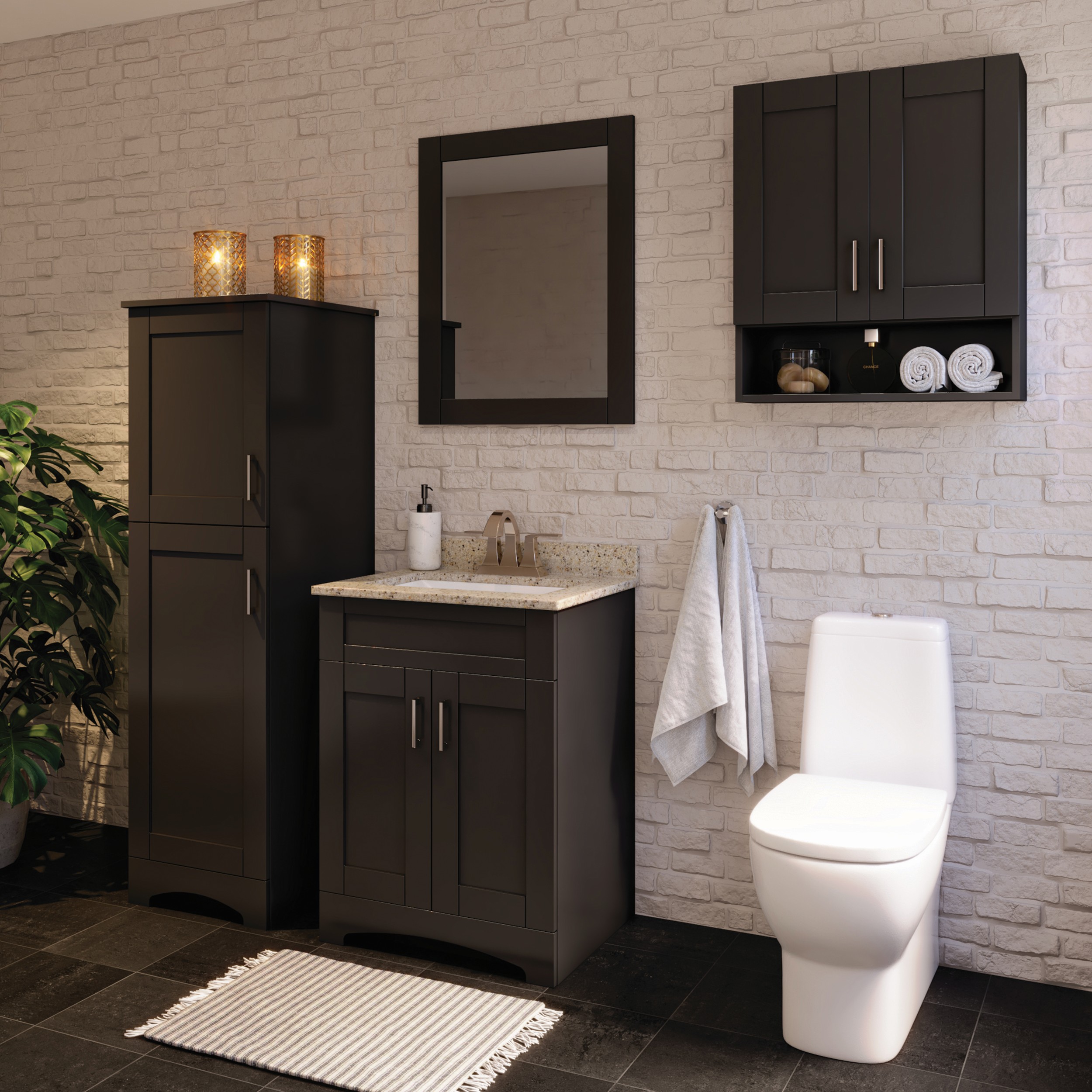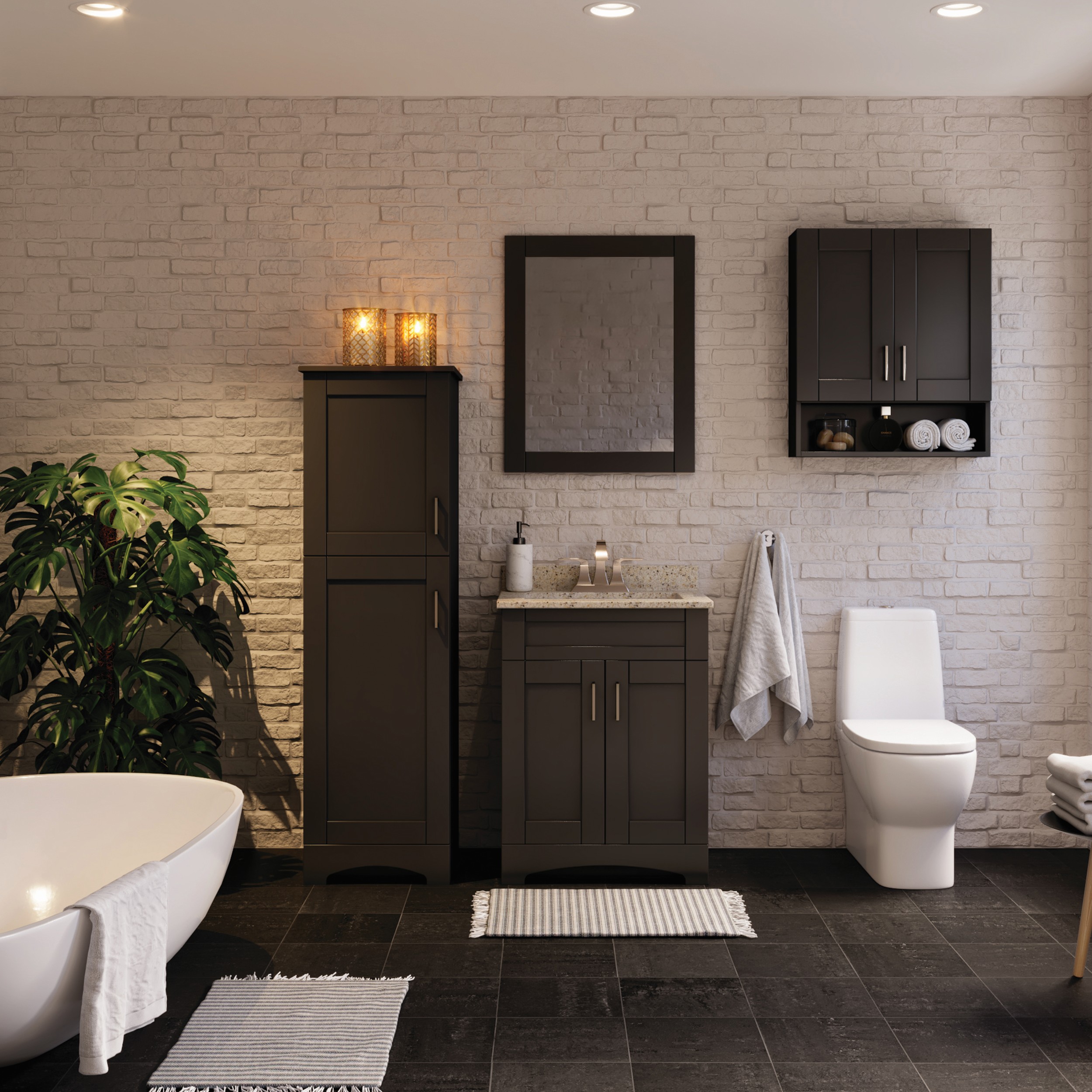 The Brighton Collection offers transitional styling with multiple vanity sizes and accessories to accommodate your unique storage needs. Brighton features a trendy shaker door and drawer profile in a dark chocolate or matte white finish. Soft close door hinges and drawer slides are included, providing smooth and quiet use. Complete the look with matching linen and medicine cabinets.