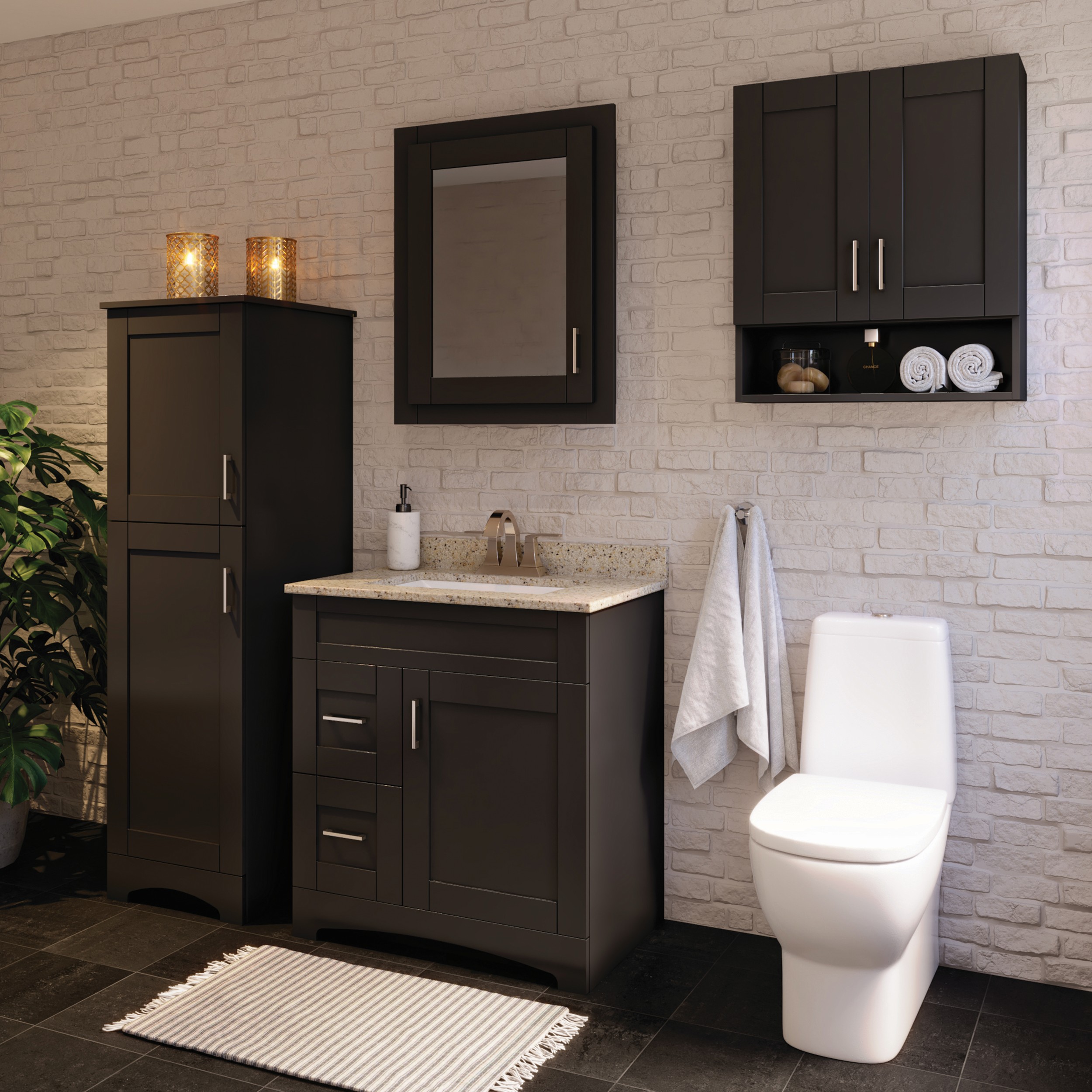 The Brighton Collection offers transitional styling with multiple vanity sizes and accessories to accommodate your unique storage needs. Brighton features a trendy shaker door and drawer profile in a dark chocolate or matte white finish. Soft close door hinges and drawer slides are included, providing smooth and quiet use. Complete the look with matching linen and medicine cabinets.