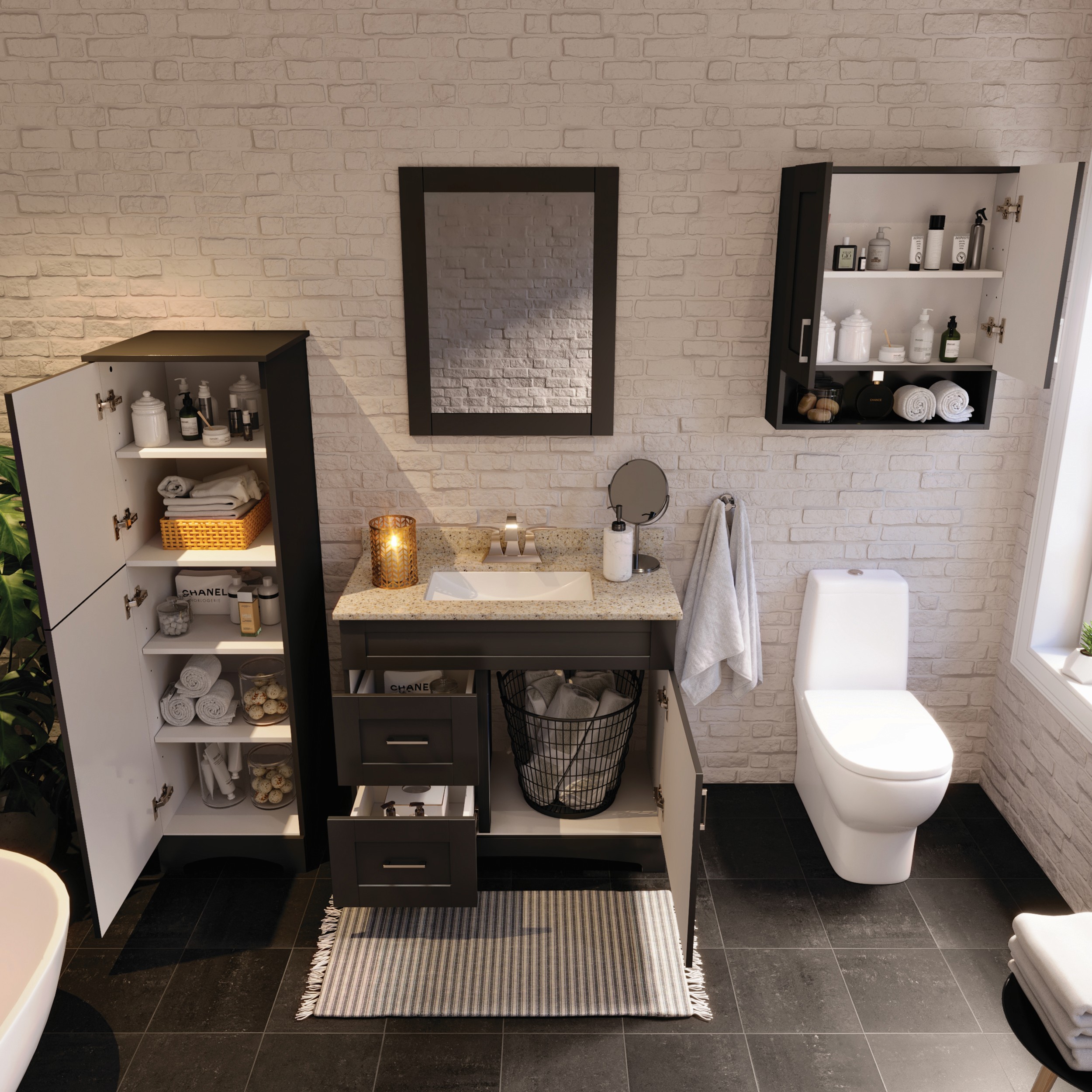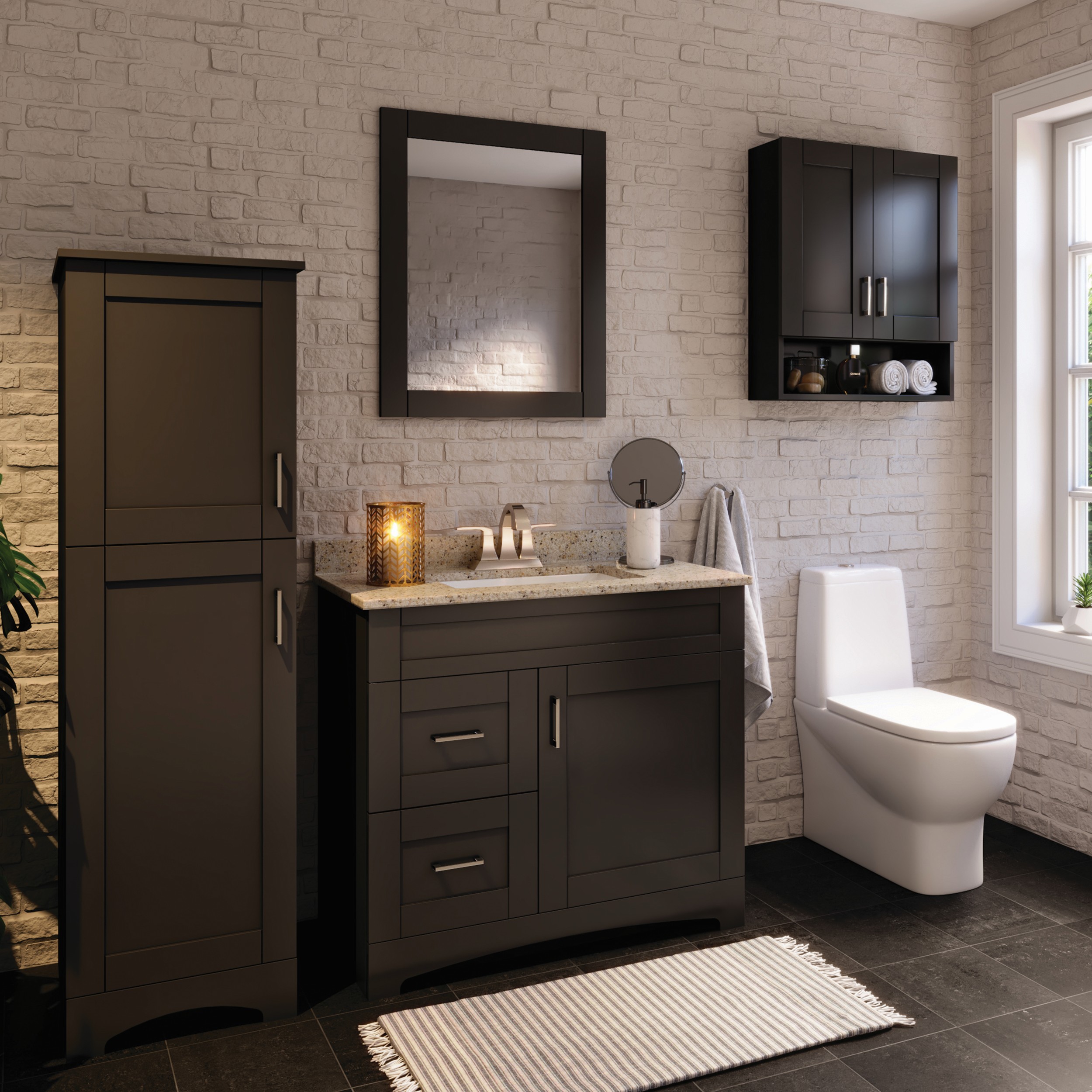 The Brighton Collection offers transitional styling with multiple vanity sizes and accessories to accommodate your unique storage needs. Brighton features a trendy shaker door and drawer profile in a dark chocolate or matte white finish. Soft close door hinges and drawer slides are included, providing smooth and quiet use. Complete the look with matching linen and medicine cabinets.