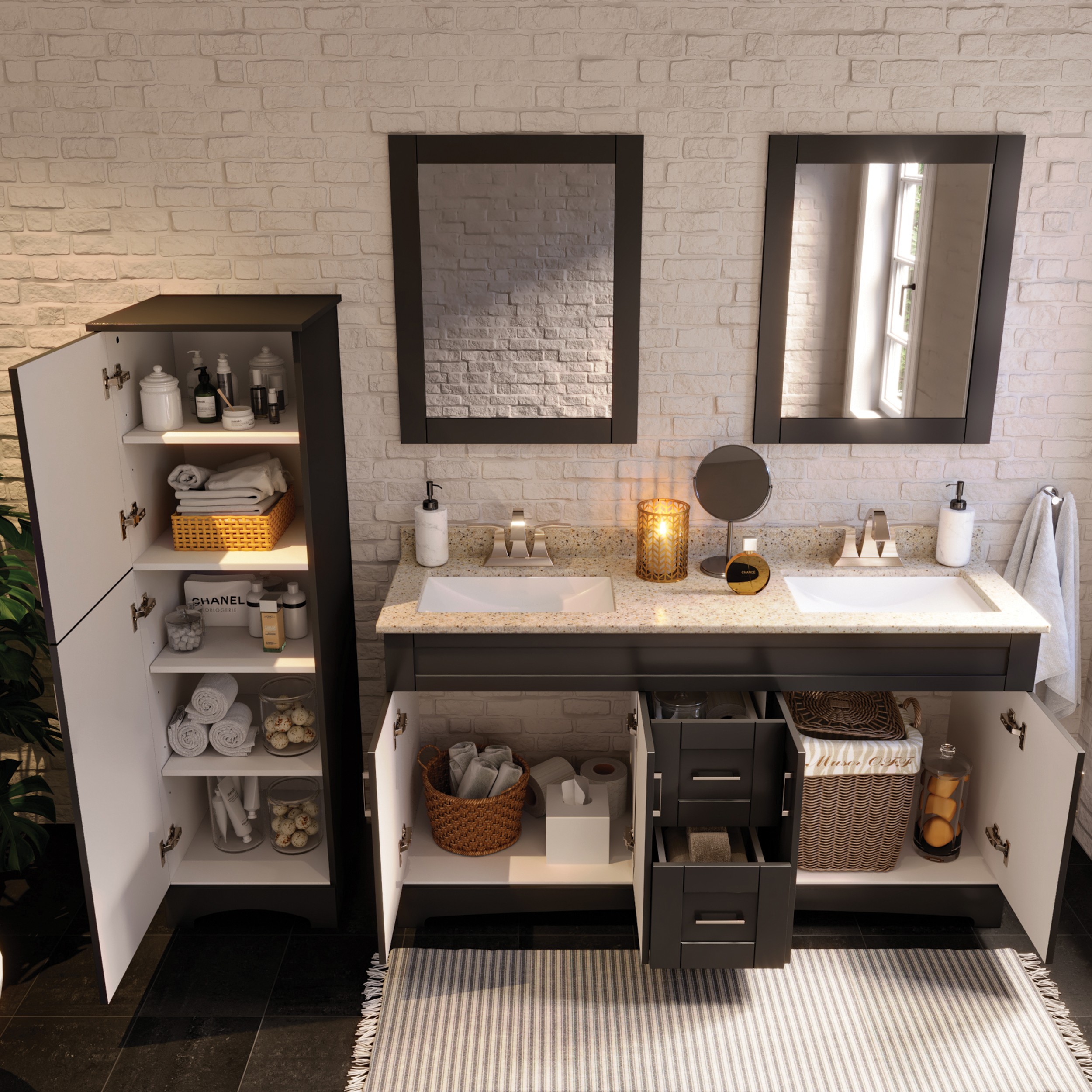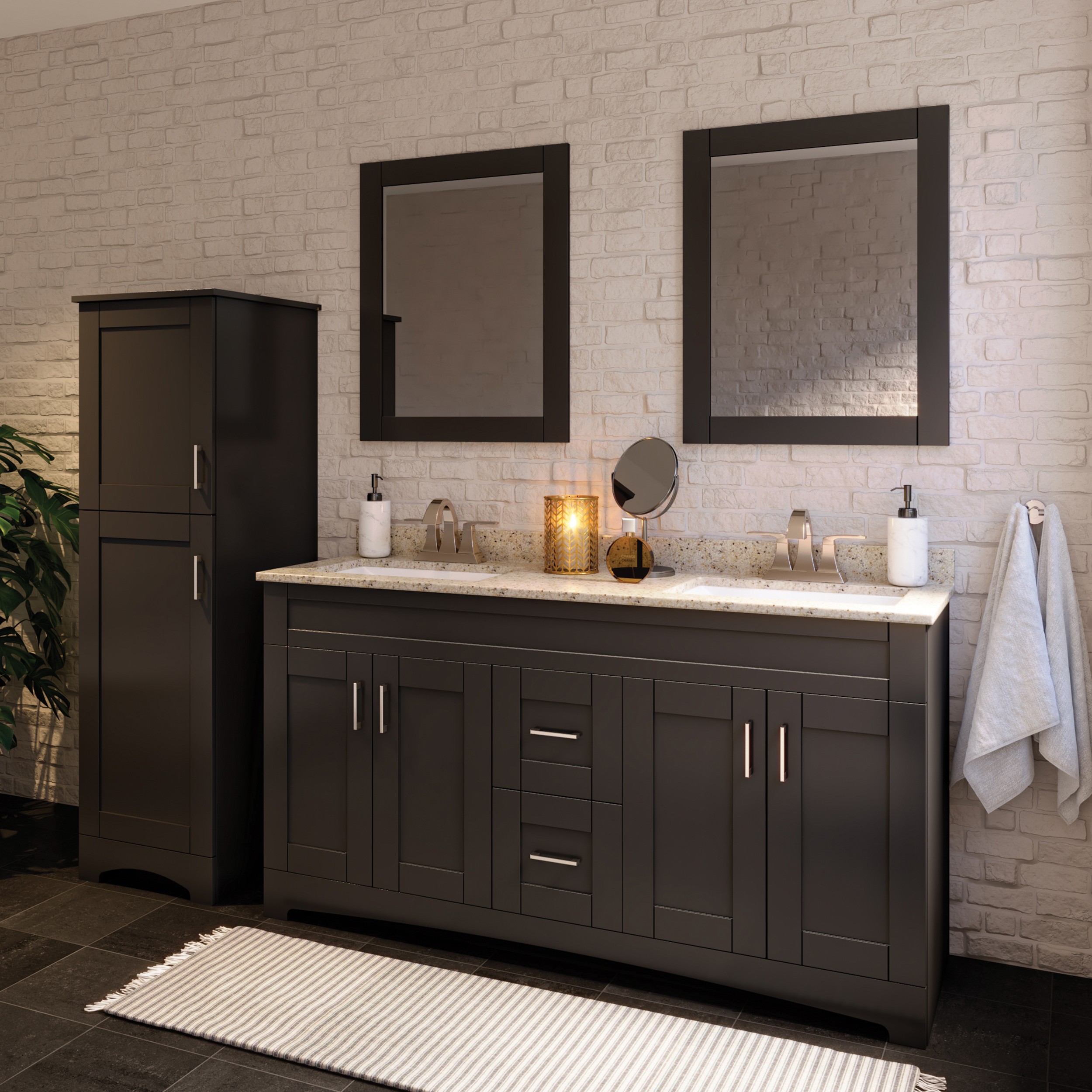 The Brighton Collection offers transitional styling with multiple vanity sizes and accessories to accommodate your unique storage needs. Brighton features a trendy shaker door and drawer profile in a dark chocolate or matte white finish. Soft close door hinges and drawer slides are included, providing smooth and quiet use. Complete the look with matching linen and medicine cabinets.
