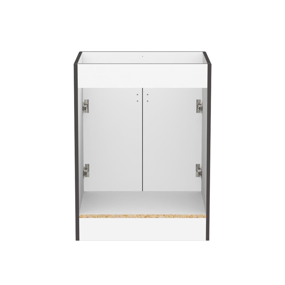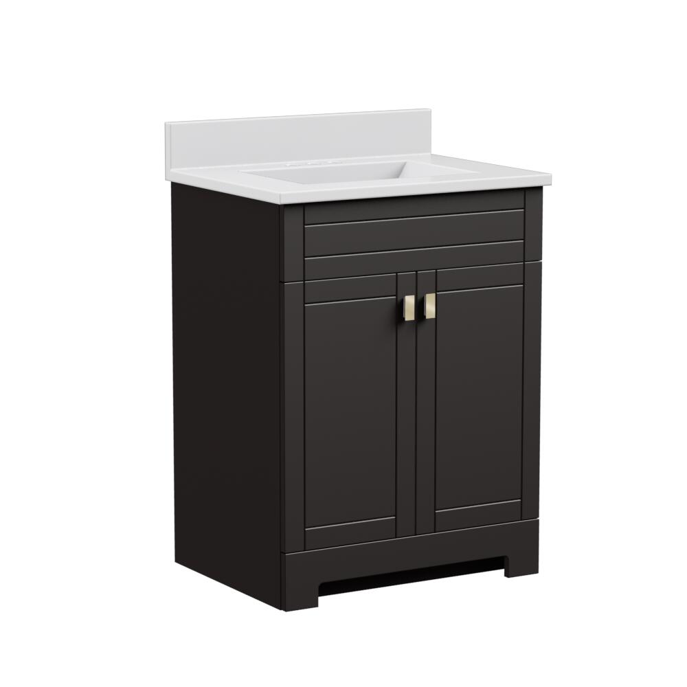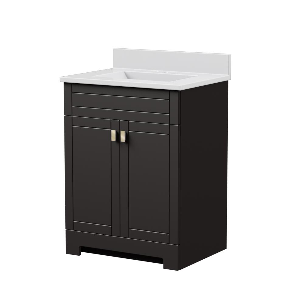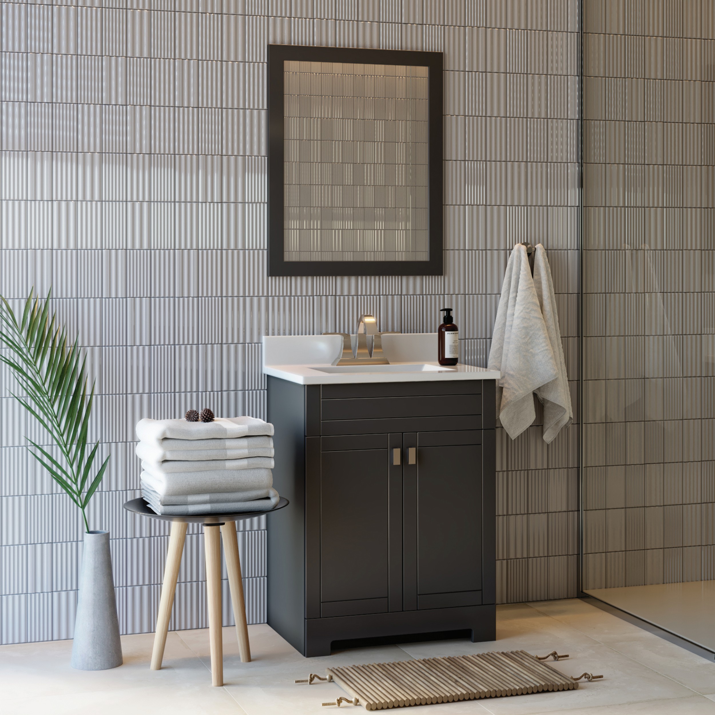 The Essex Collection offers transitional styling in multiple sizes and finishes to suit your unique taste and storage needs. Each vanity is available in dark chocolate, matte white and gray finishes with contemporary brushed nickel hardware and soft close features. A white cultured marble vanity top, set for a 4 inch on-center faucet is included (faucet sold separately). The 1-piece vanity top features an easy to clean integrated wave bowl and backsplash.