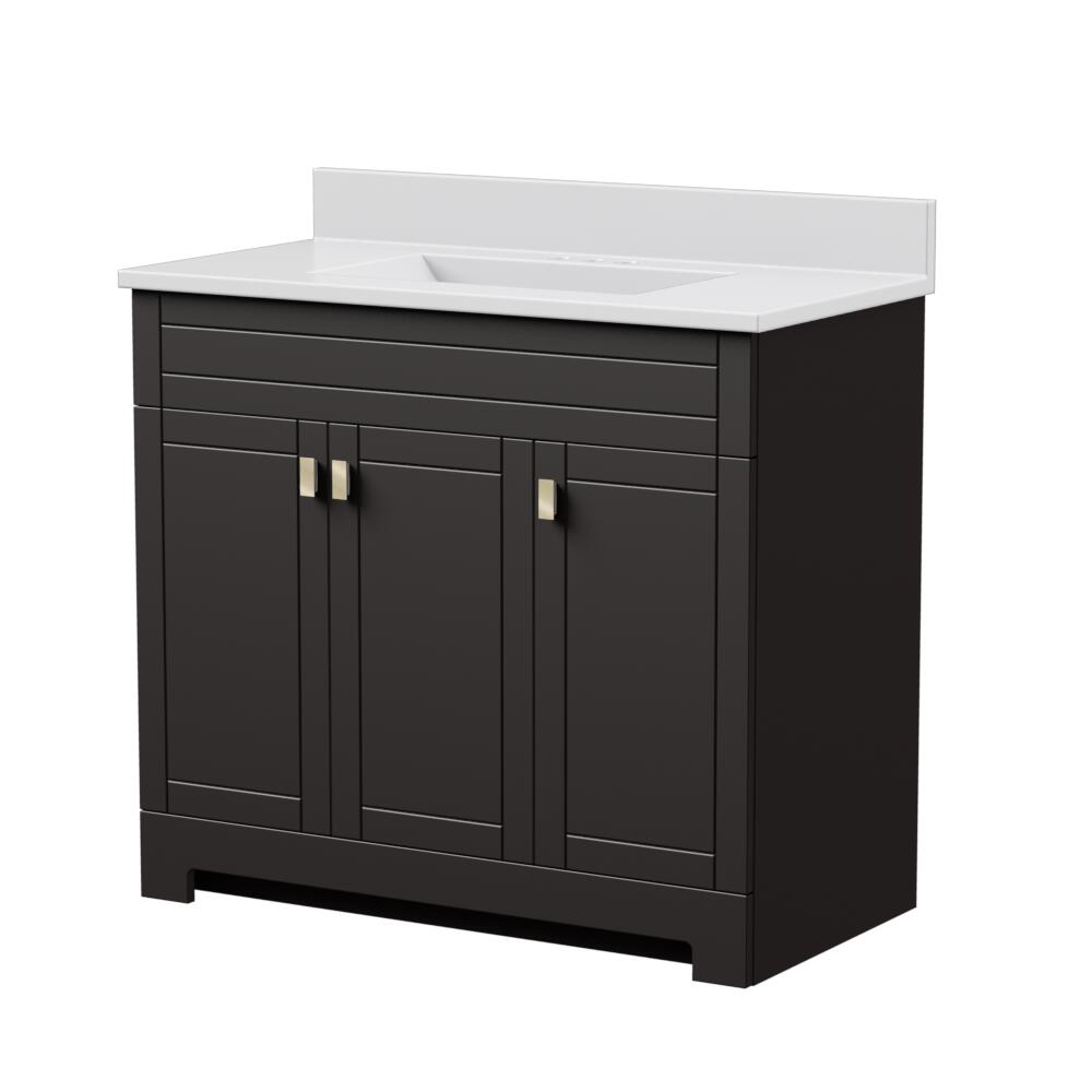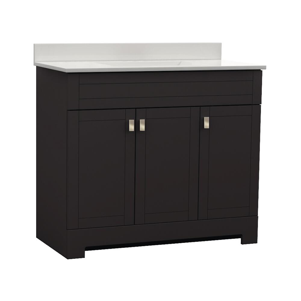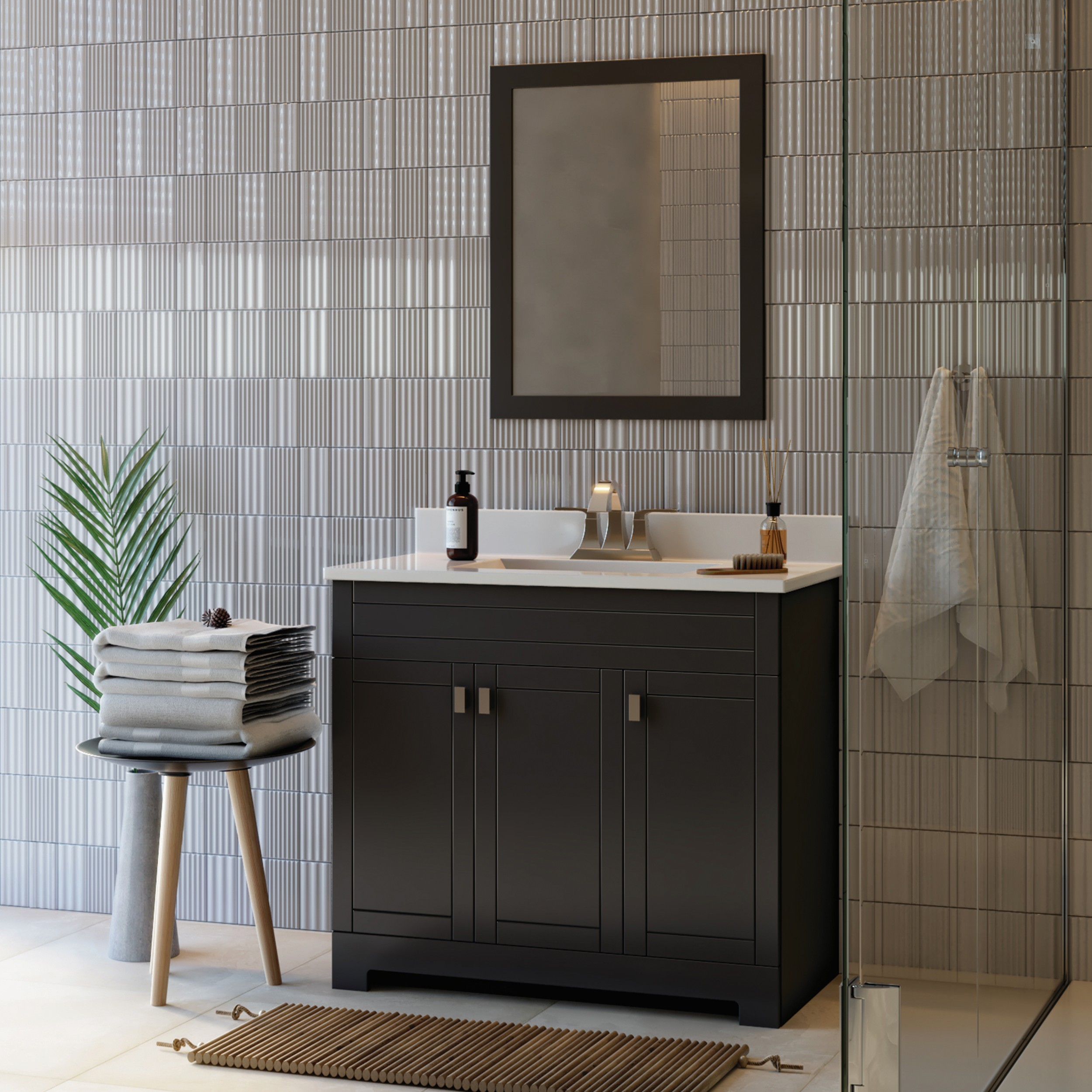 The Essex Collection offers transitional styling in multiple sizes and finishes to suit your unique taste and storage needs. Each vanity is available in dark chocolate, matte white, and gray finishes with contemporary brushed nickel hardware and soft close features. A white cultured marble vanity top, set for a 4-inch on-center faucet, is included (faucet sold separately). The one-piece vanity top features an easy-to-clean integrated wave bowl and backsplash.