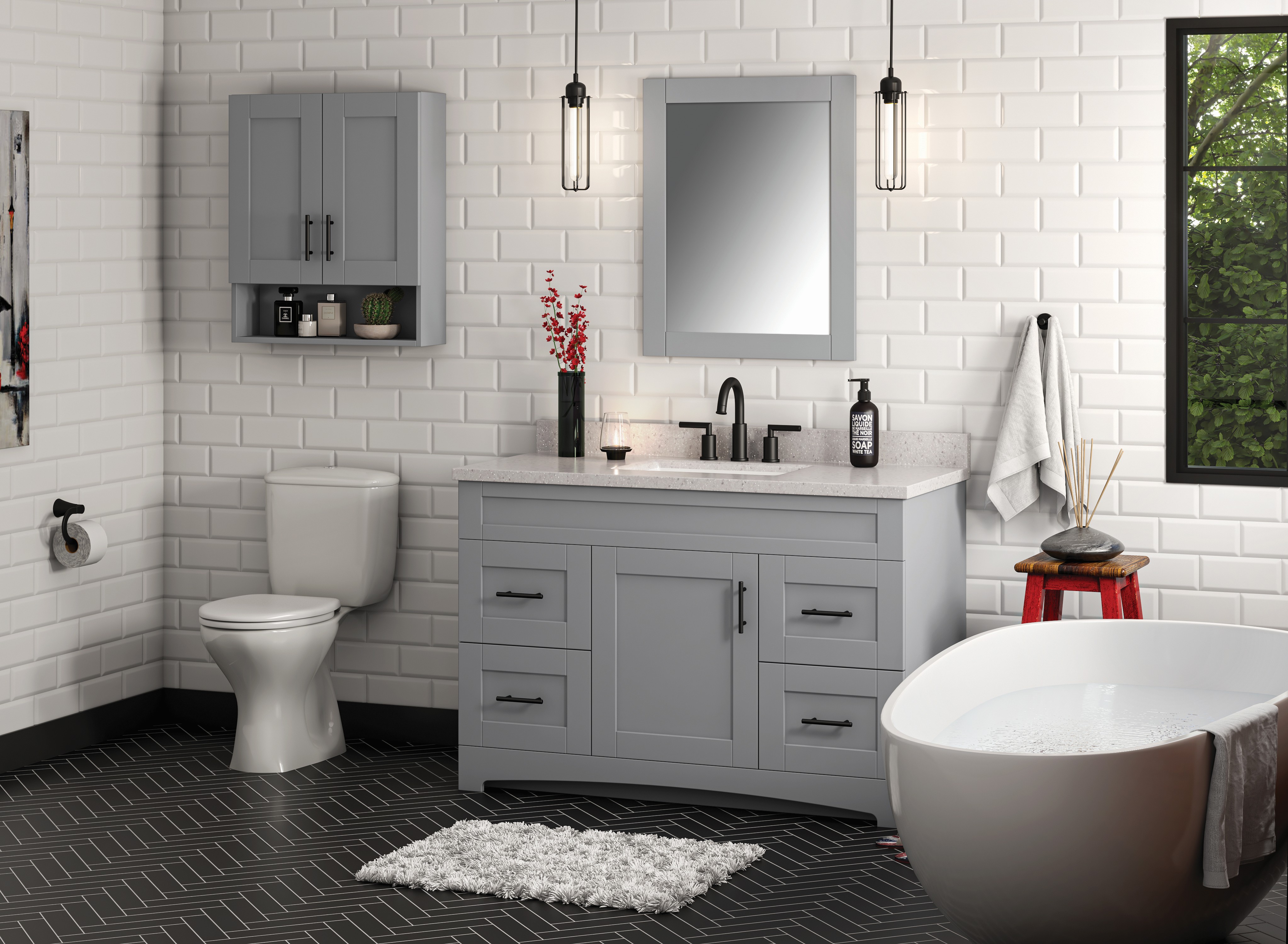 Transform your bathroom with the elegant Brighton mirror. With a chic gray frame and rectangular silhouette, it’s designed to perfectly complement the Brighton vanity collection. The mirror’s horizontal and vertical mounting hardware mean you can choose how to hang it based on your wall space and preference.