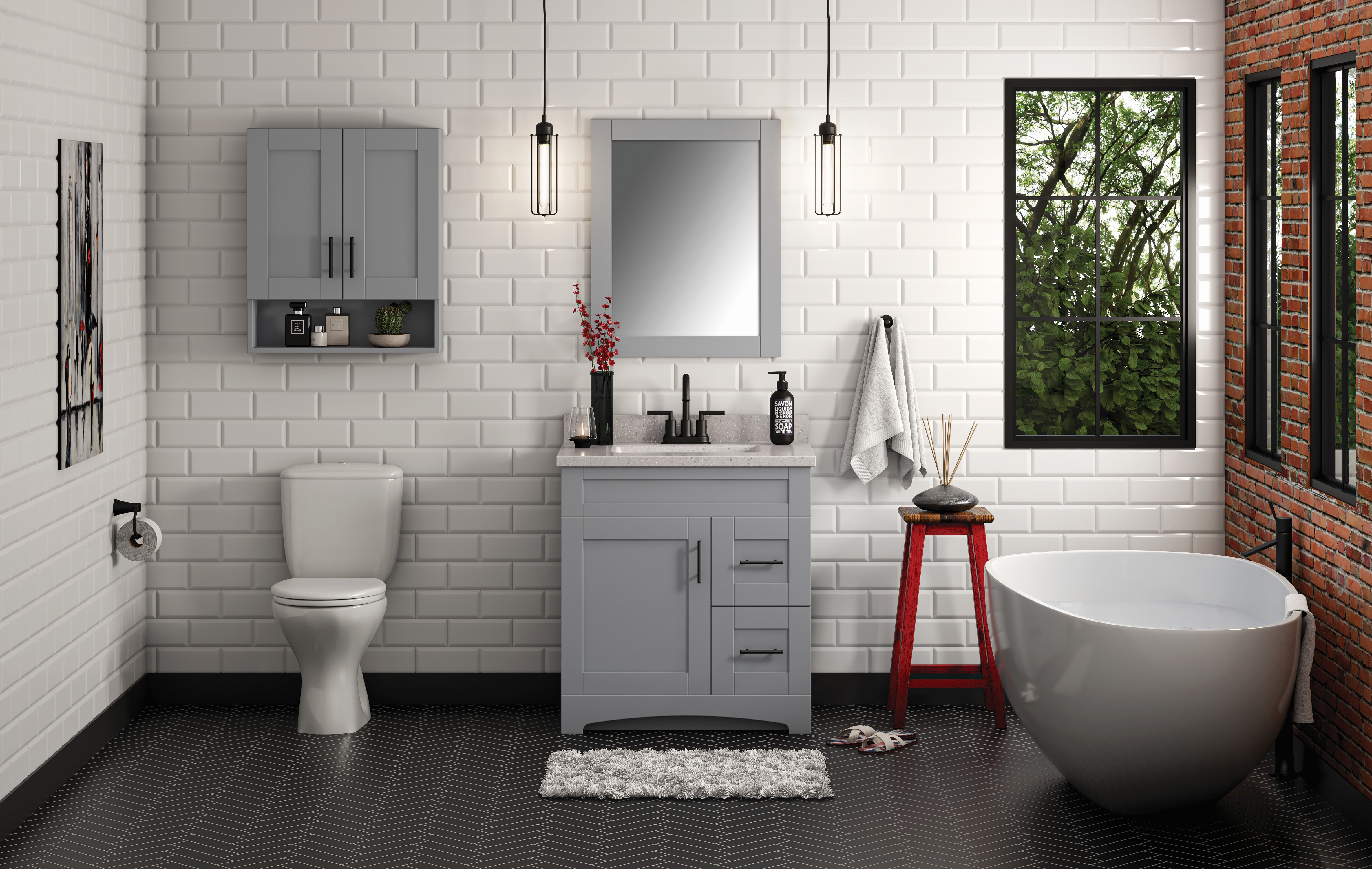 MagickWoods Elements Brighton 30″W x 18-3/4″D Gray Bathroom Vanity Cabinet