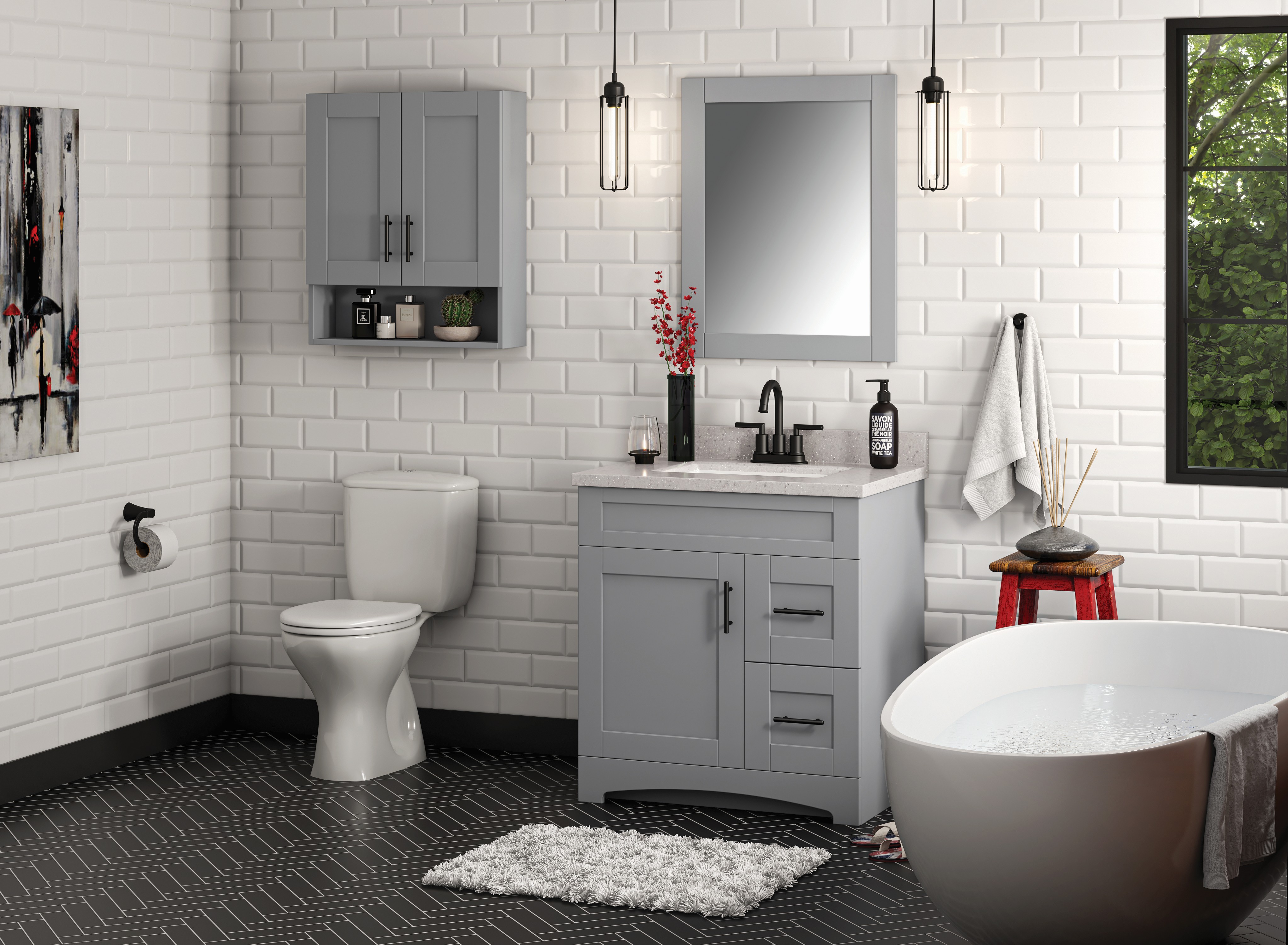 The Brighton Collection offers transitional styling with multiple vanity sizes and accessories to accommodate your unique storage needs. The Brighton features a trendy shaker door and drawer profile in a or finish. Soft-close door hinges and drawer slides are included, providing smooth and quiet use. Complete the look with matching linen and medicine cabinets.