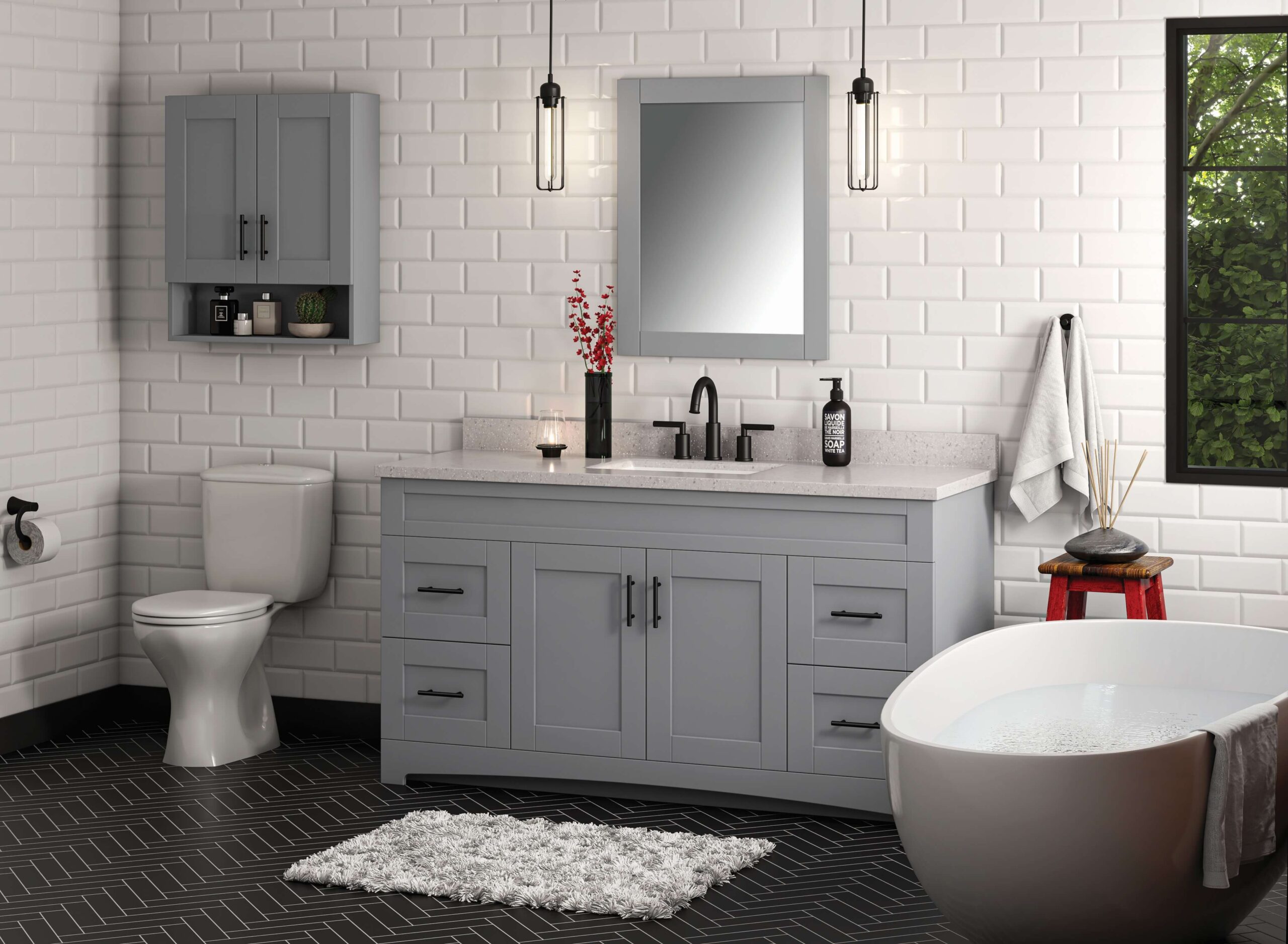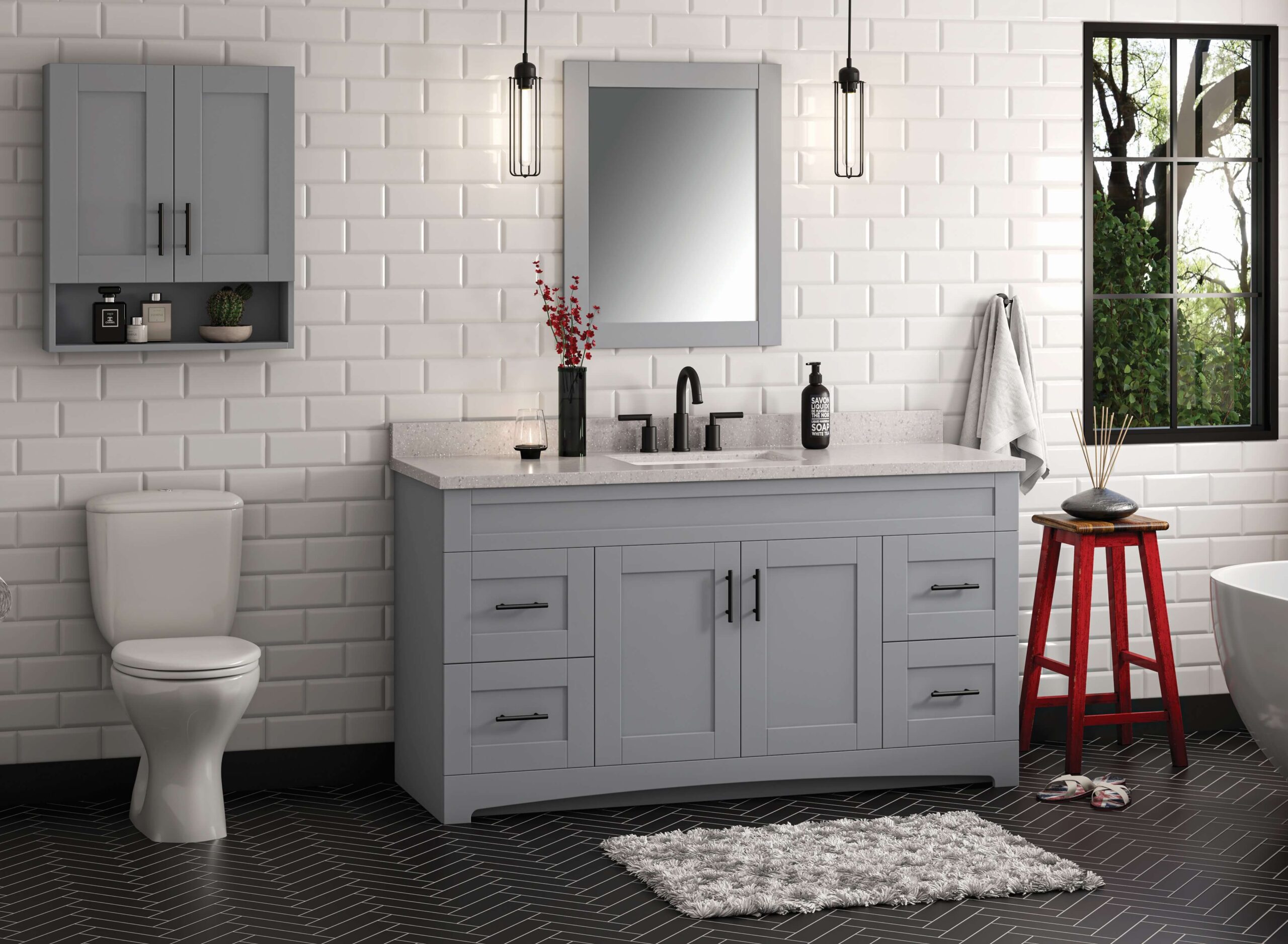 The Brighton Collection offers transitional styling with multiple vanity sizes and accessories to accommodate your unique storage needs. The Brighton features a trendy shaker door and drawer profile in a or finish. Soft-close door hinges and drawer slides are included, providing smooth and quiet use. Complete the look with matching linen and medicine cabinets.