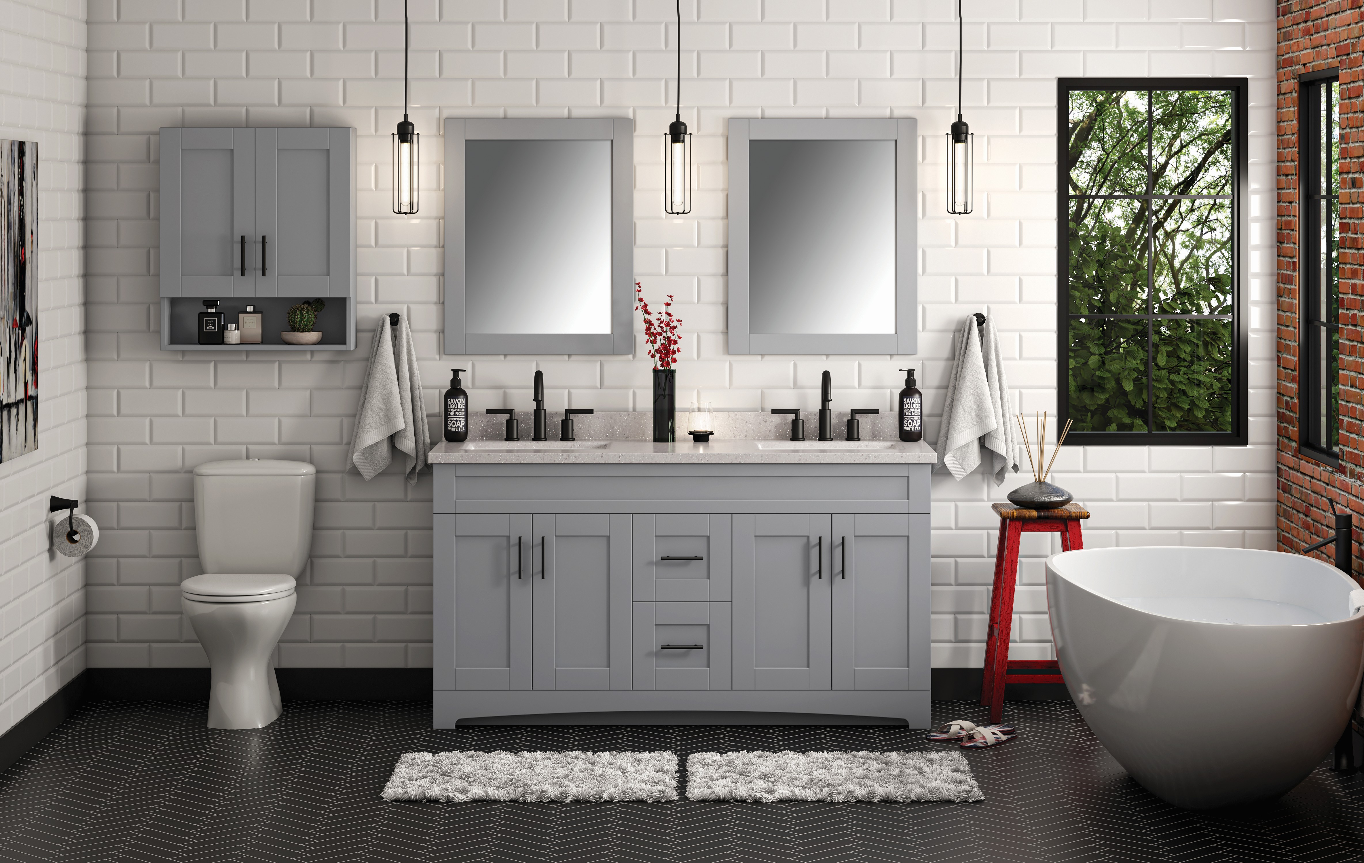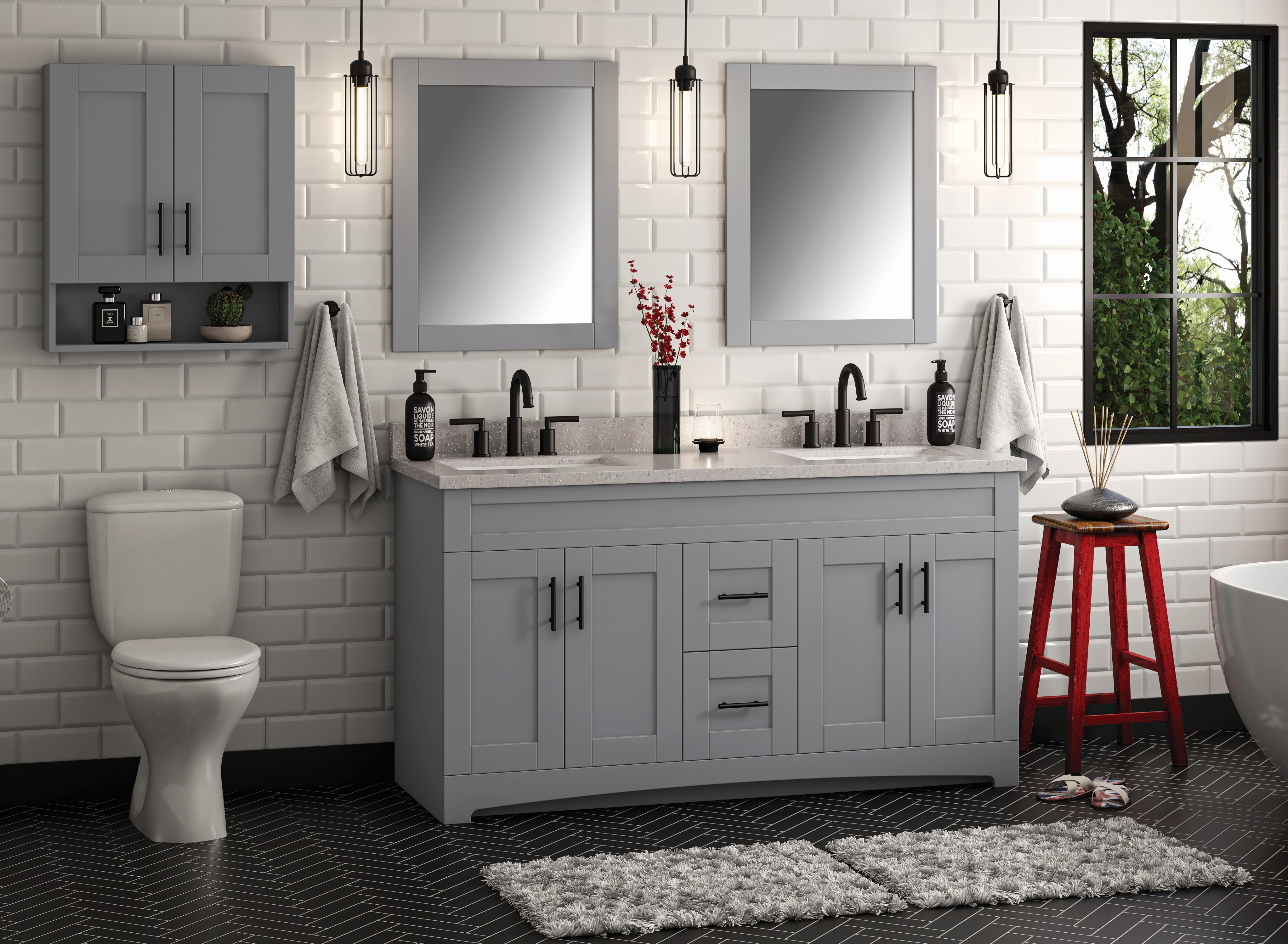 The Brighton Collection offers transitional styling with multiple vanity sizes and accessories to accommodate your unique storage needs. The Brighton features a trendy shaker door and drawer profile in a or finish. Soft-close door hinges and drawer slides are included, providing smooth and quiet use. Complete the look with matching linen and medicine cabinets.