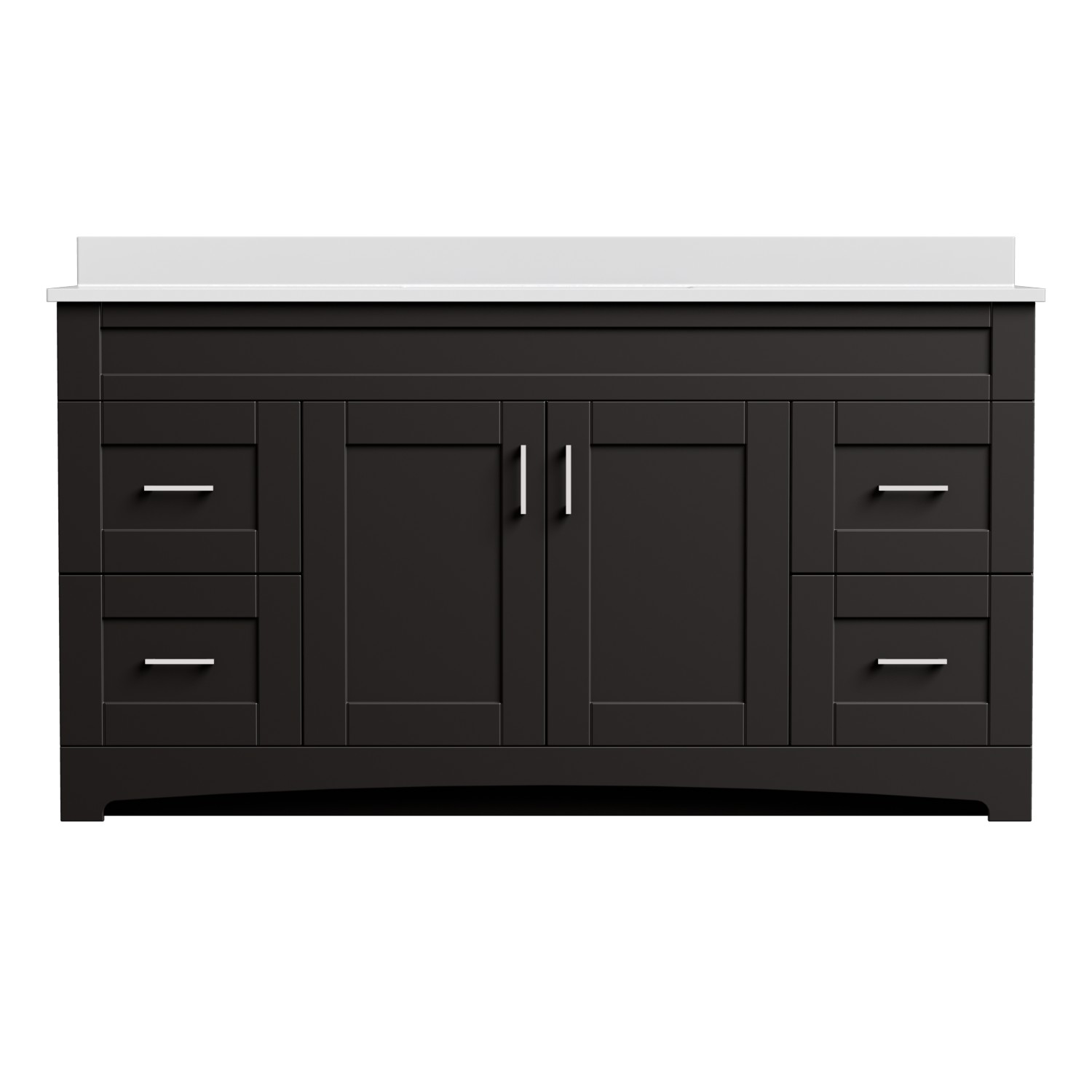 Refresh your bathroom with the stylish Sheffield vanity base, featuring transitional-style doors and drawers that blend classic and contemporary design elements. The soft-close door hinges and drawer glides ensure smooth and silent operation. Available in a painted Cloud Gray or Dark Chocolate exterior finish, this vanity base adds a touch of sophistication to any space. The recessed toe-kick completes the look with clean, streamlined detail.