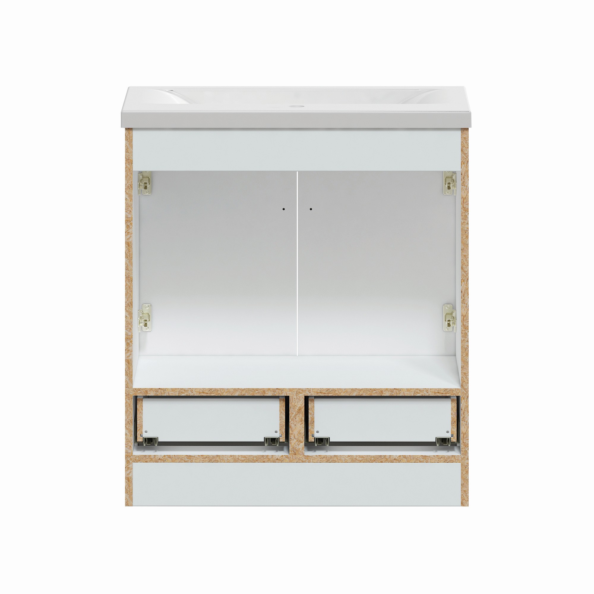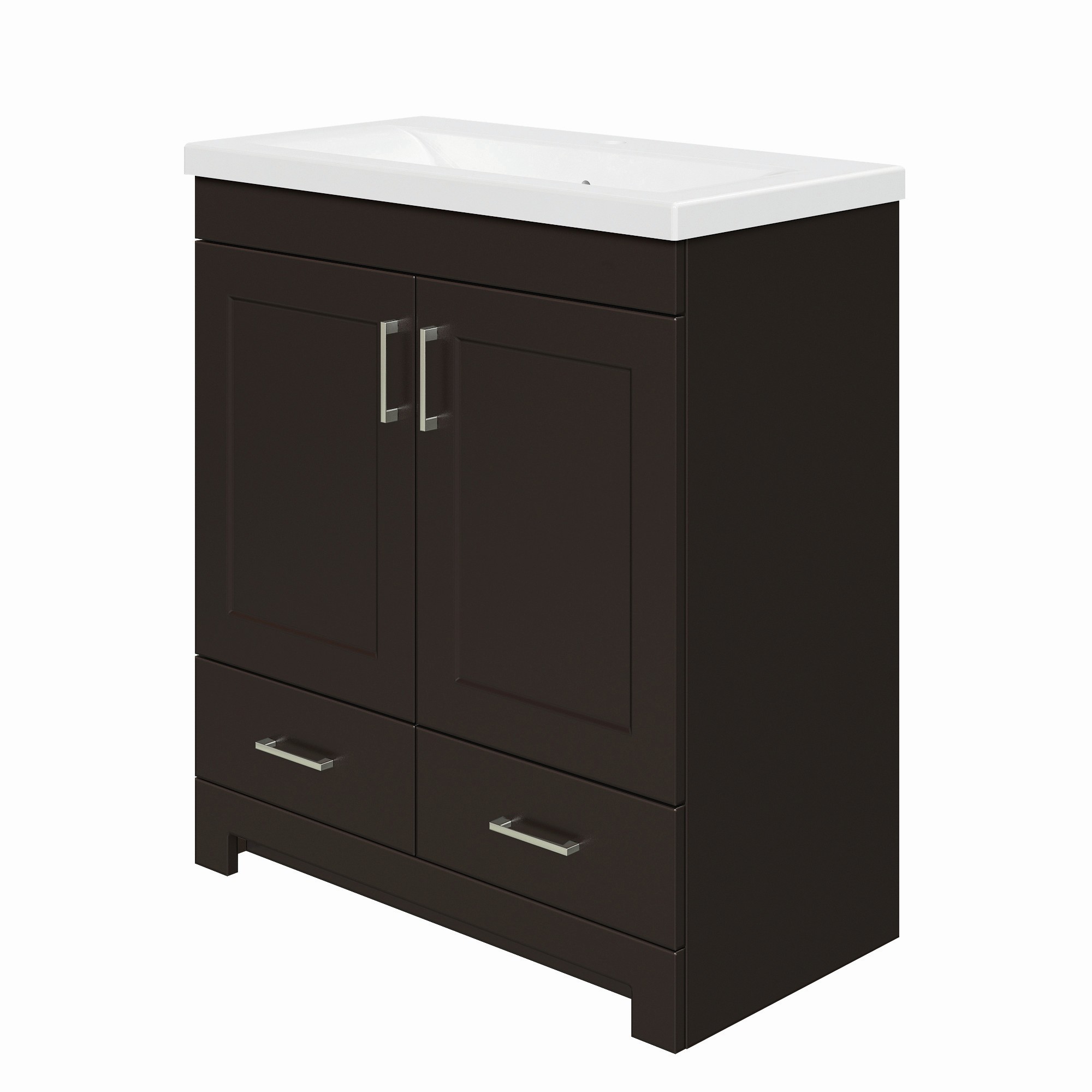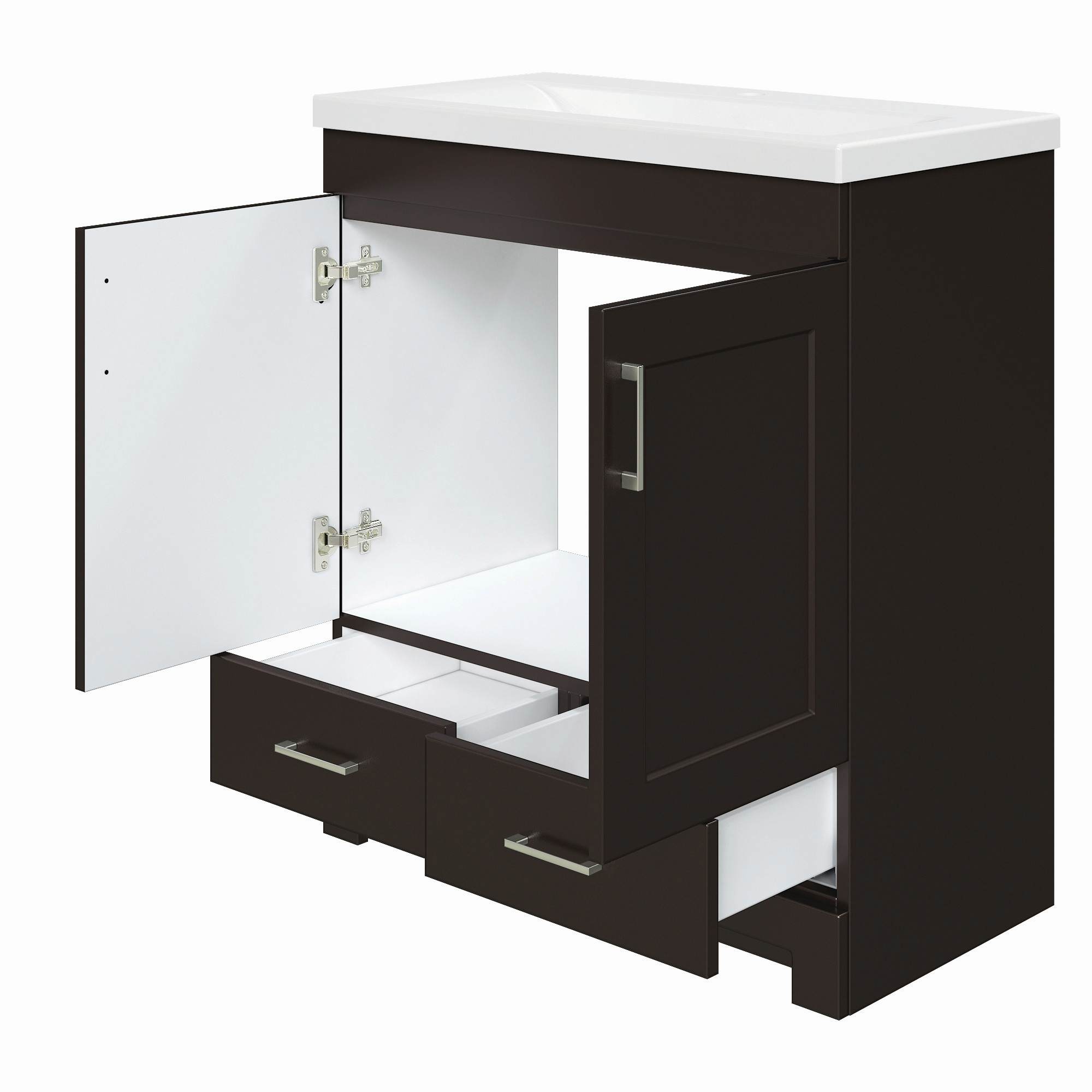 The MagickWoods Staverton collection offers a space-saving design which is ideal for smaller sized bath and powder rooms. Staverton is available in 3 beautiful and popular finishes (White, Espresso Bean and Steel Gray) to coordinate with multiple decors. Each finish is complimented with contemporary cabinet handles in a brushed nickel finish. Each 24-inch wide vanity features 2 doors and 1 drawer, and 30-inch wide and 36-inch wide vanities feature 2 doors and 2 drawers to your keep toiletries tidy. Staverton’s soft-closing doors and drawers eliminate slamming, creating quiet peaceful mornings. The simple-designed Staverton mirror hangs vertically or horizontally and is a perfect addition to any room in your home. Each Staverton vanity base includes a white ceramic vanity top with integrated rectangular bowl, drilled for a single-hole faucet (faucets are sold separately). Complete the look: the Staverton linen cabinet offers concealed storage, plus an open shelf to hold linens, baskets and favorite toiletries. Staverton vanities, mirrors and linen cabinets are conveniently pre-assembled and easy to install.
