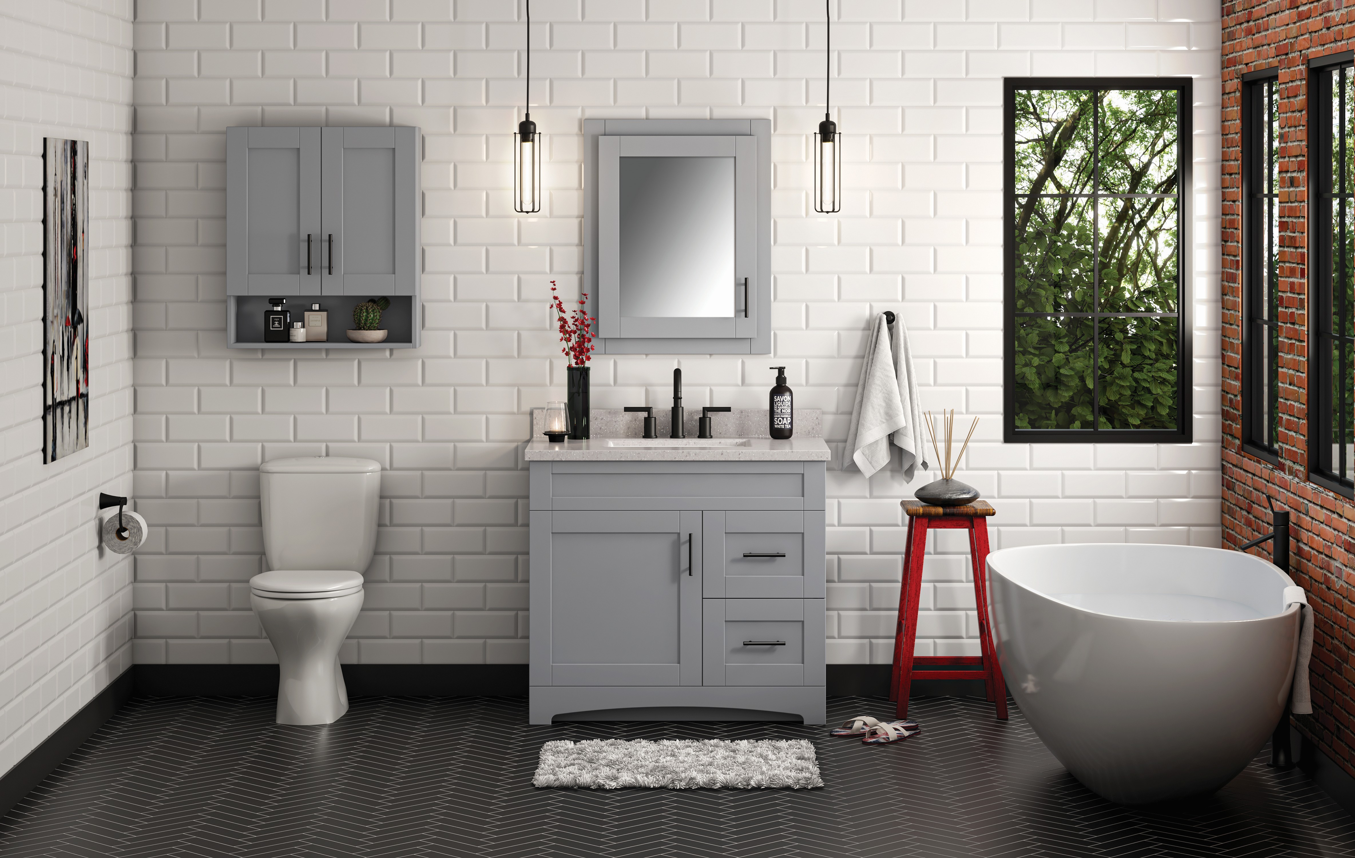 MagickWoods Elements Brighton 24″W x 7″D x 28″H Gray Bathroom Wall Cabinet