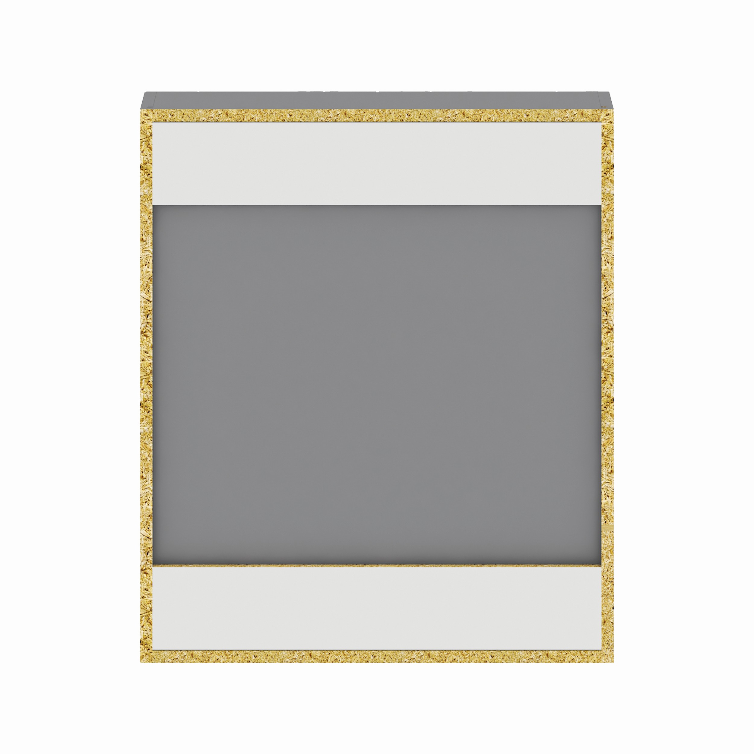 • Laminated particle board construction with gray exterior and matte white interior
